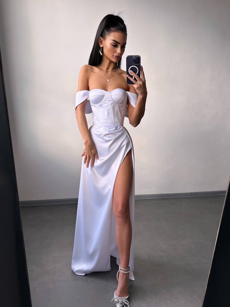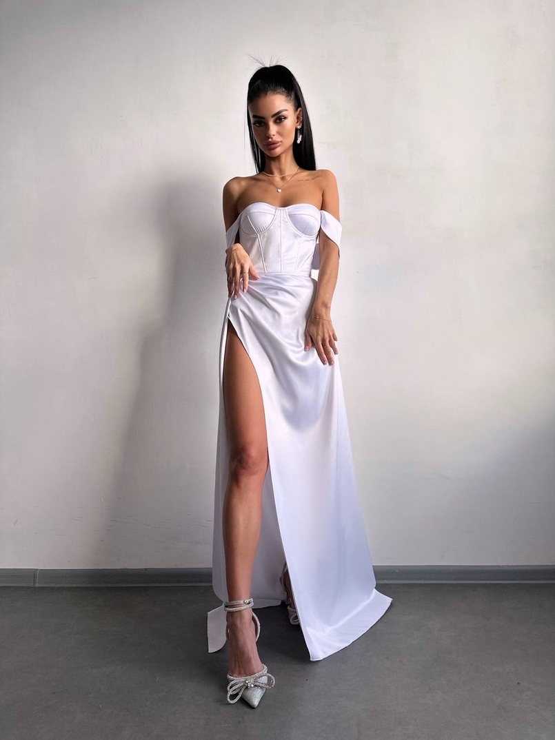 Атласний комплект: корсет бюстʼє + спідниця максі