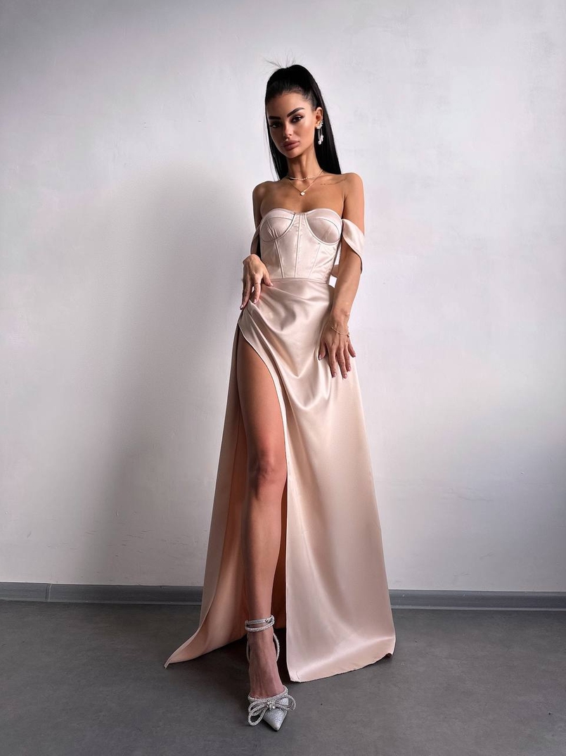 Атласний комплект: корсет бюстʼє + спідниця максі