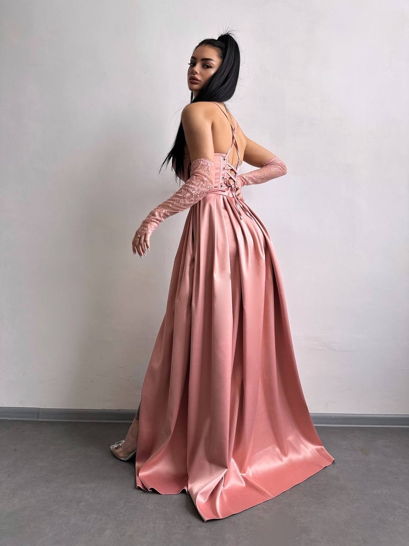 Атласний комплект: корсет + спідниця максі
