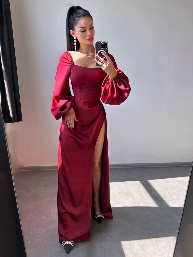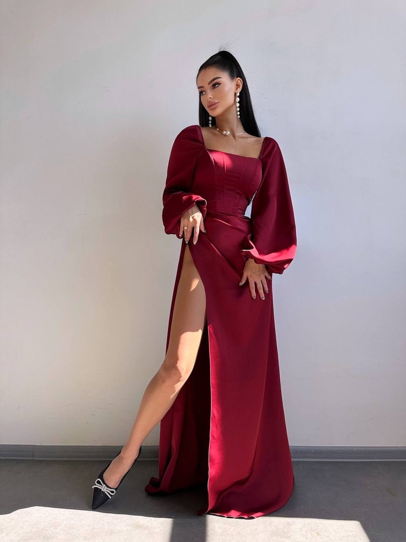 Атласний комплект: корсет + спідниця максі з драпіруванням