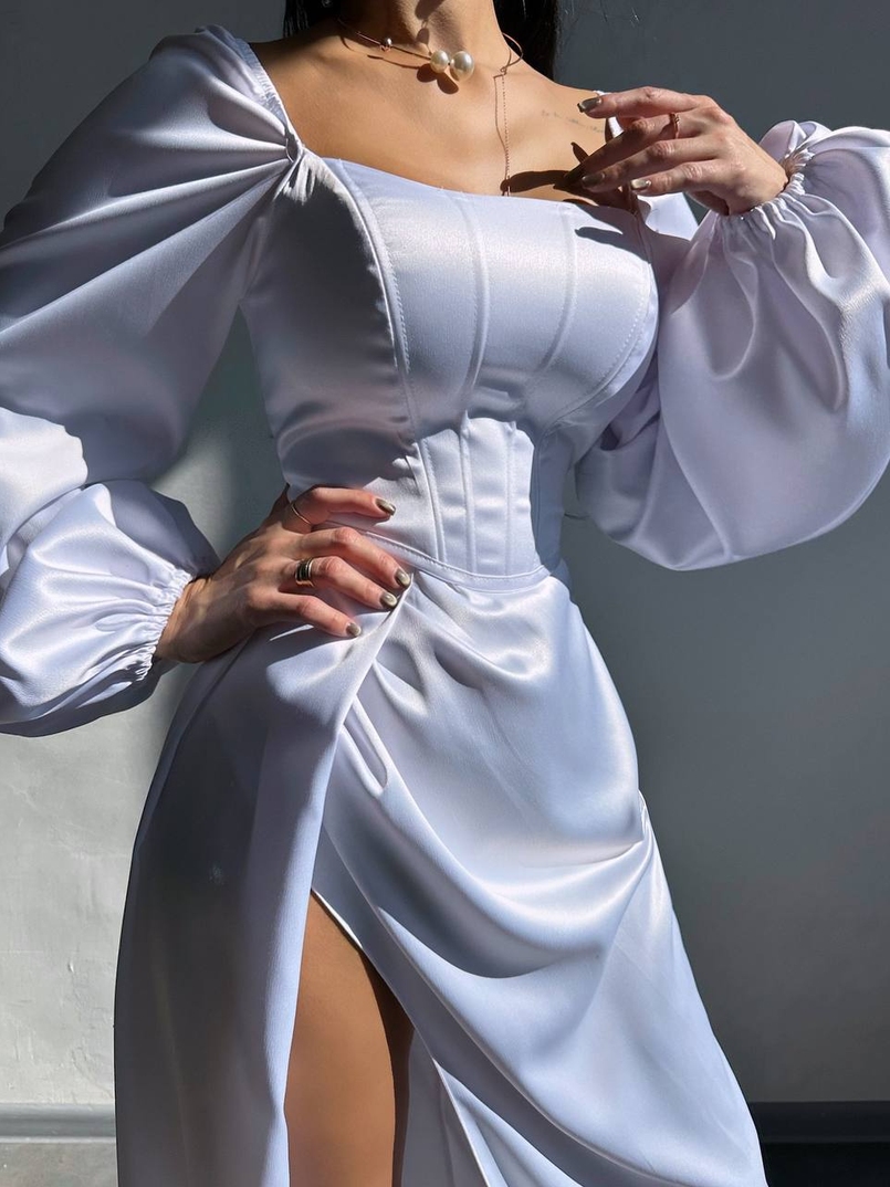 Атласний комплект: корсет + спідниця максі з драпіруванням