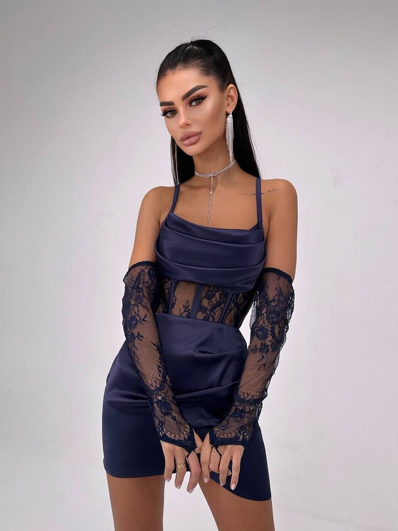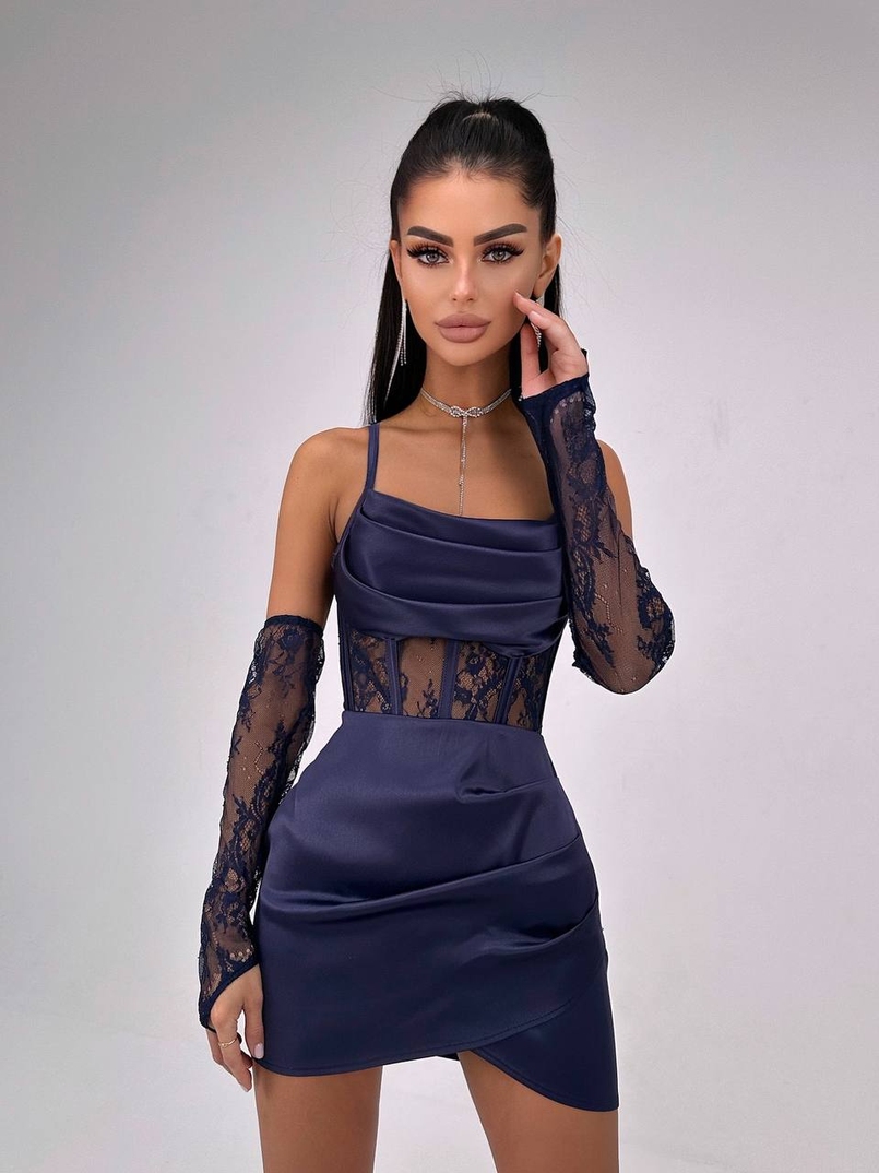 Комплект: корсет, декорований мереживом + рукавички+ спідниця міні з драпіруванням