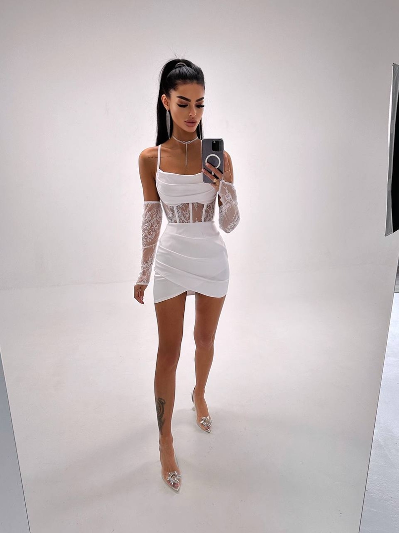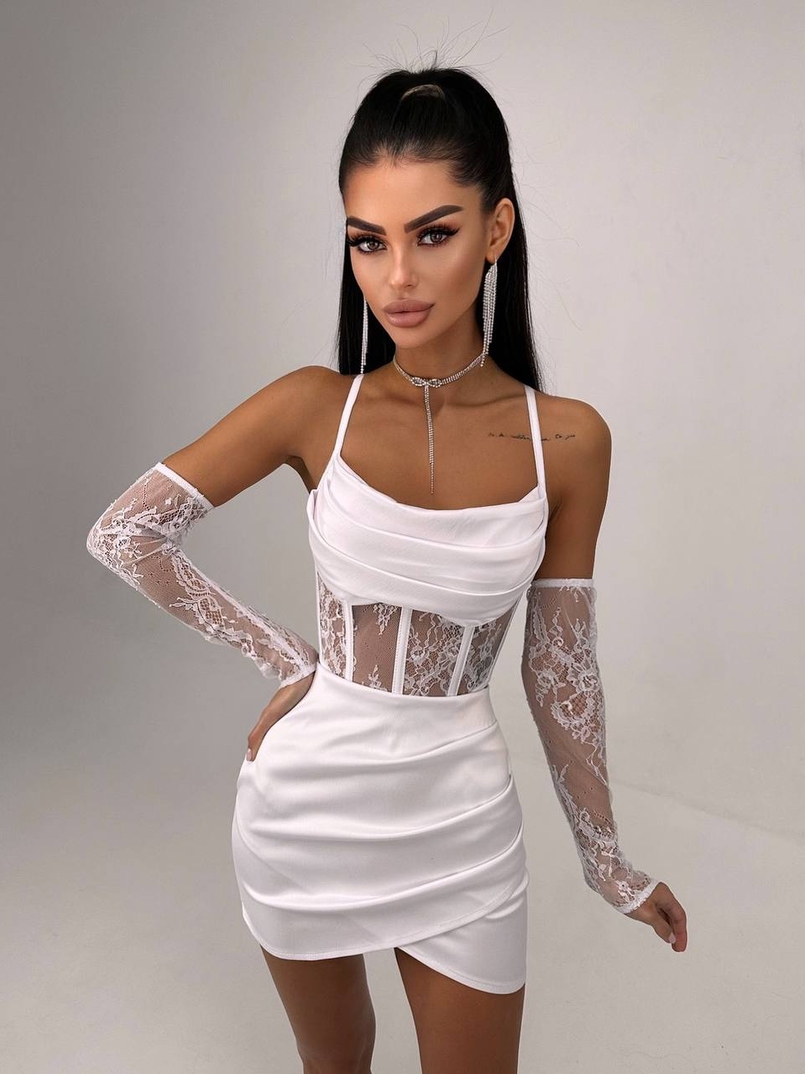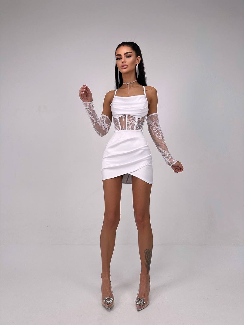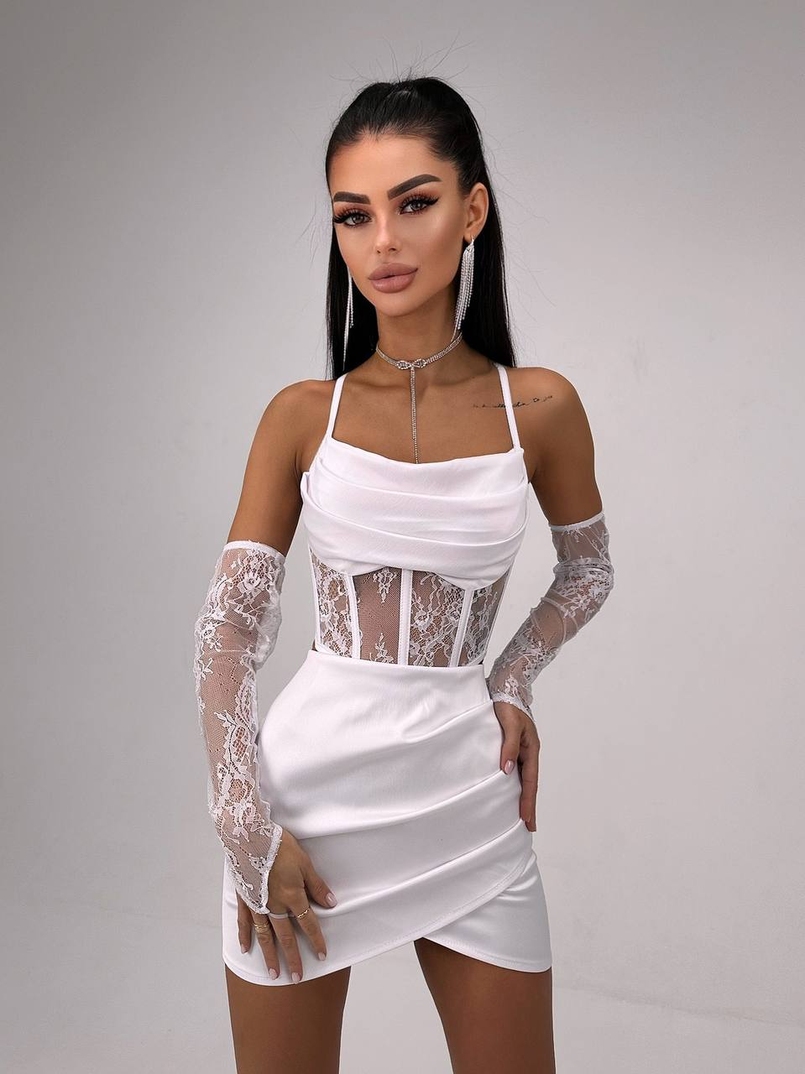 Комплект: корсет, декорований мереживом + рукавички+ спідниця міні з драпіруванням