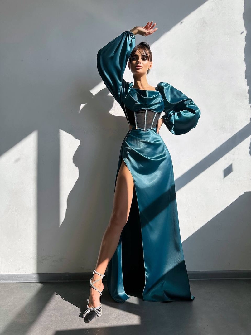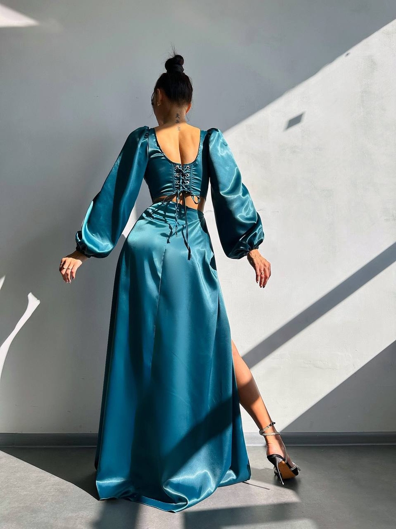 Комплект: корсет, декорований стразами + спідниця максі з драпіруванням