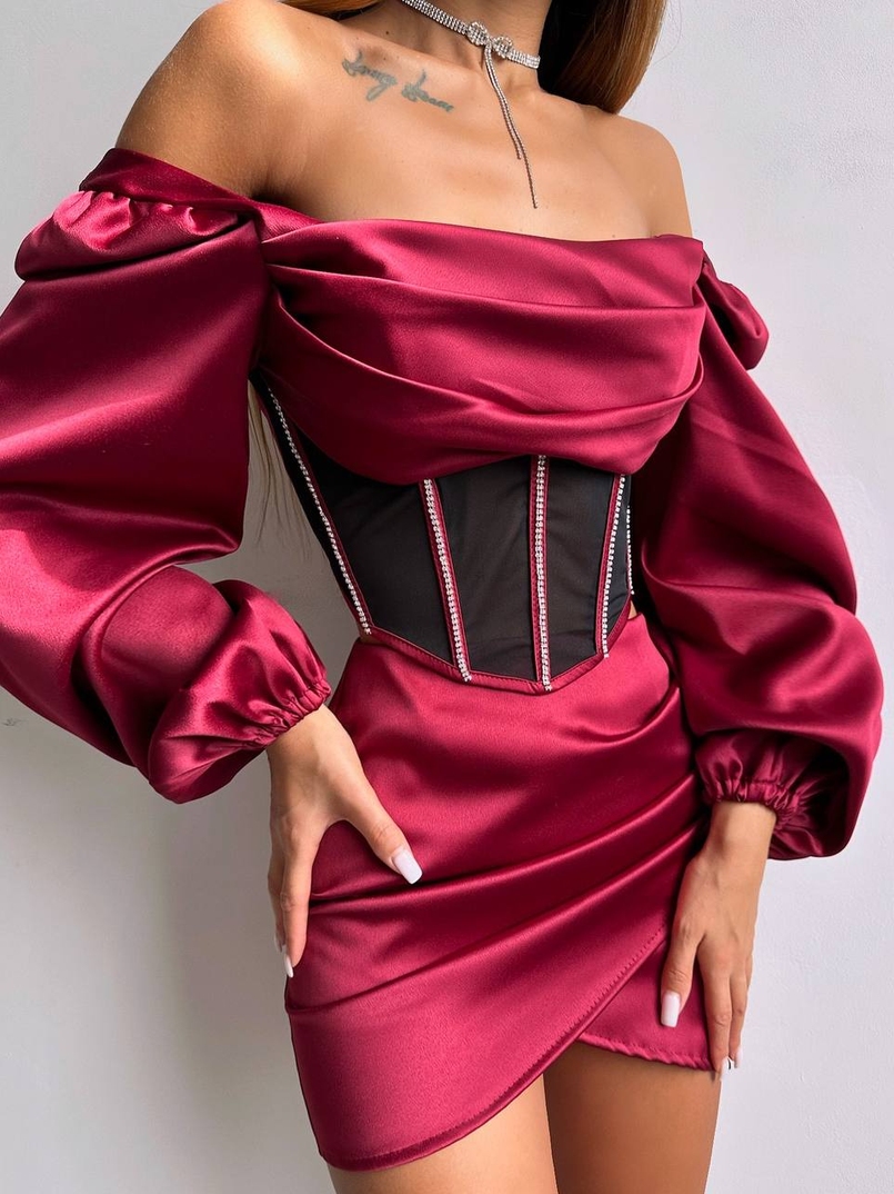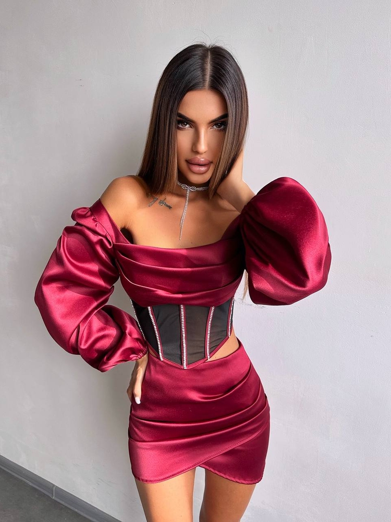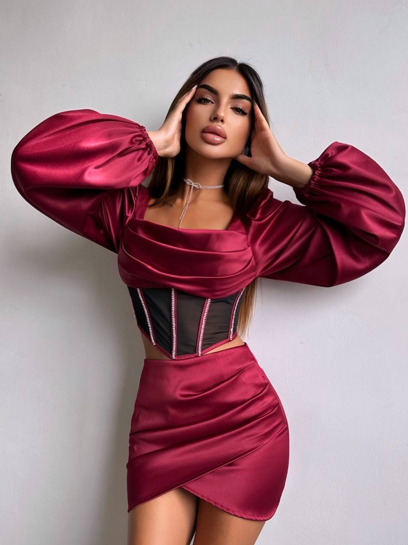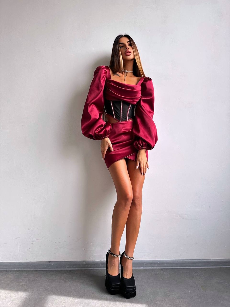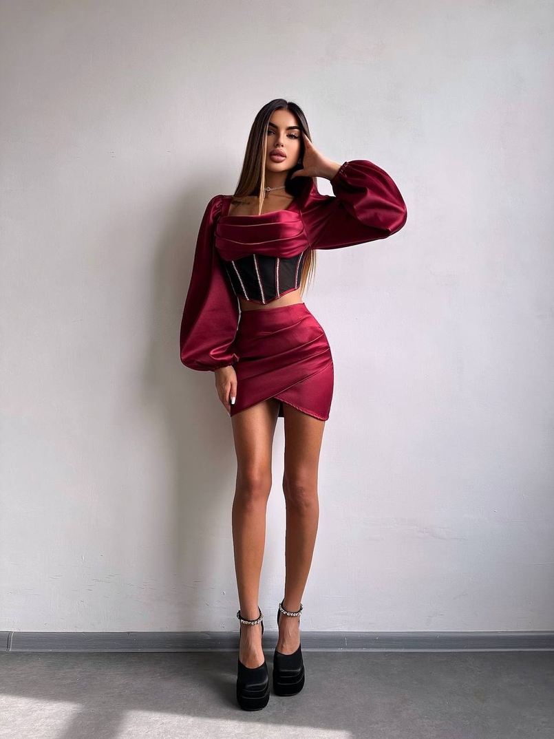 Комплект: корсет, декорований стразами + спідниця міні з драпіруванням