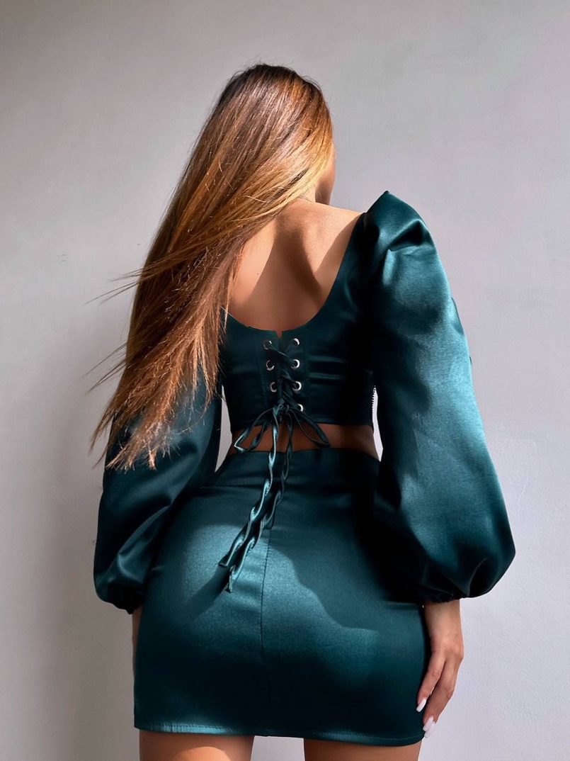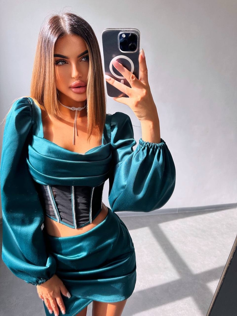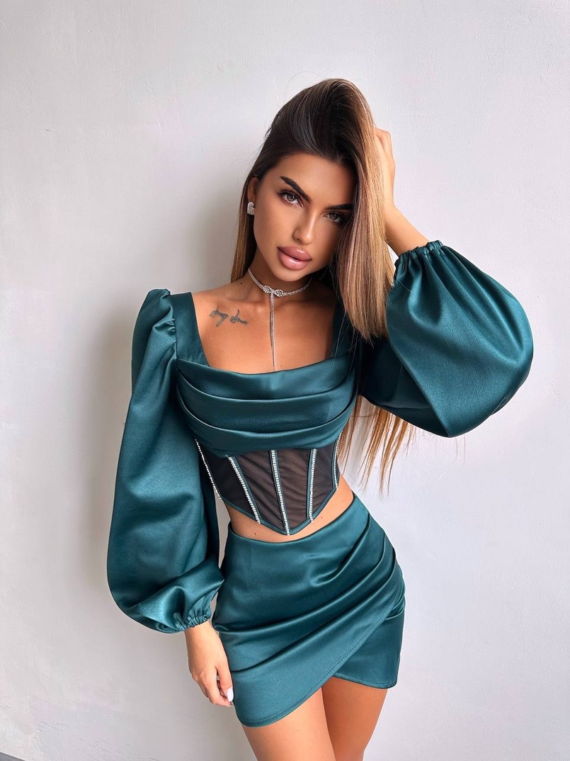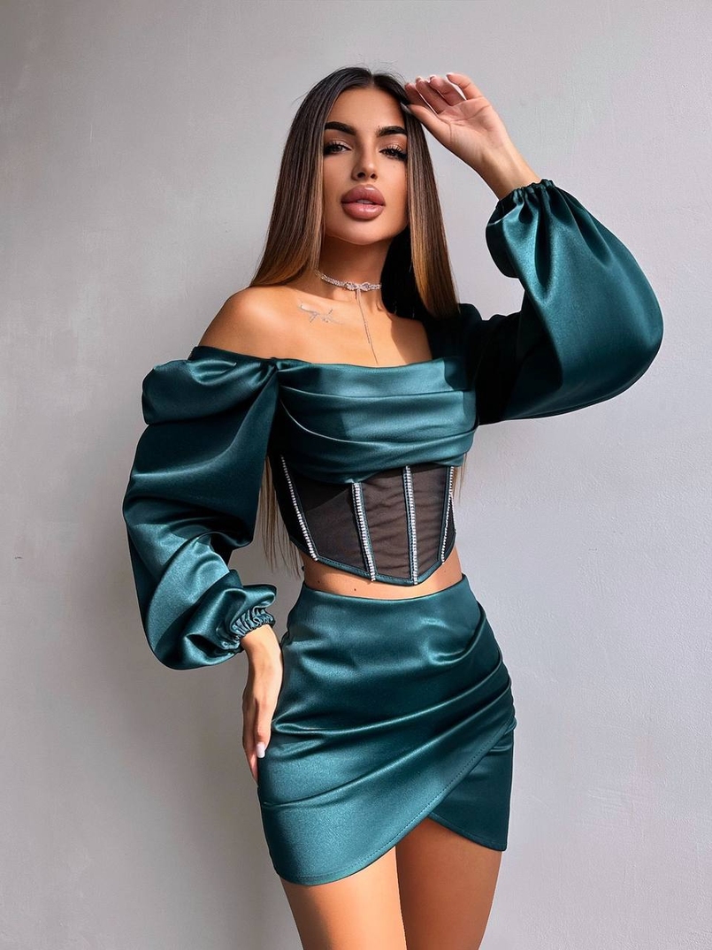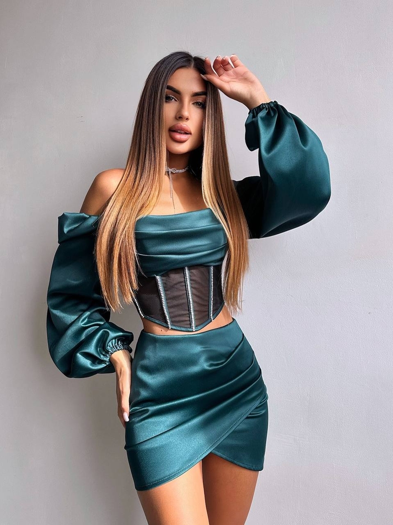 Комплект: корсет, декорований стразами + спідниця міні з драпіруванням