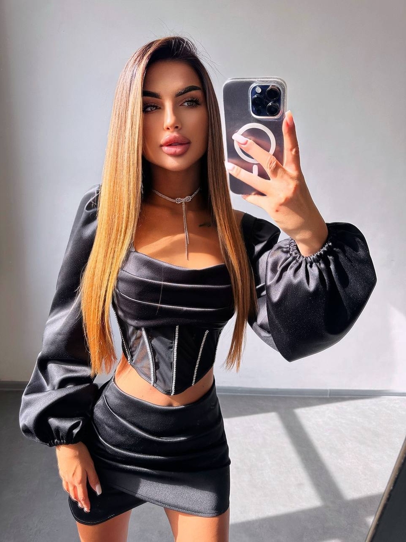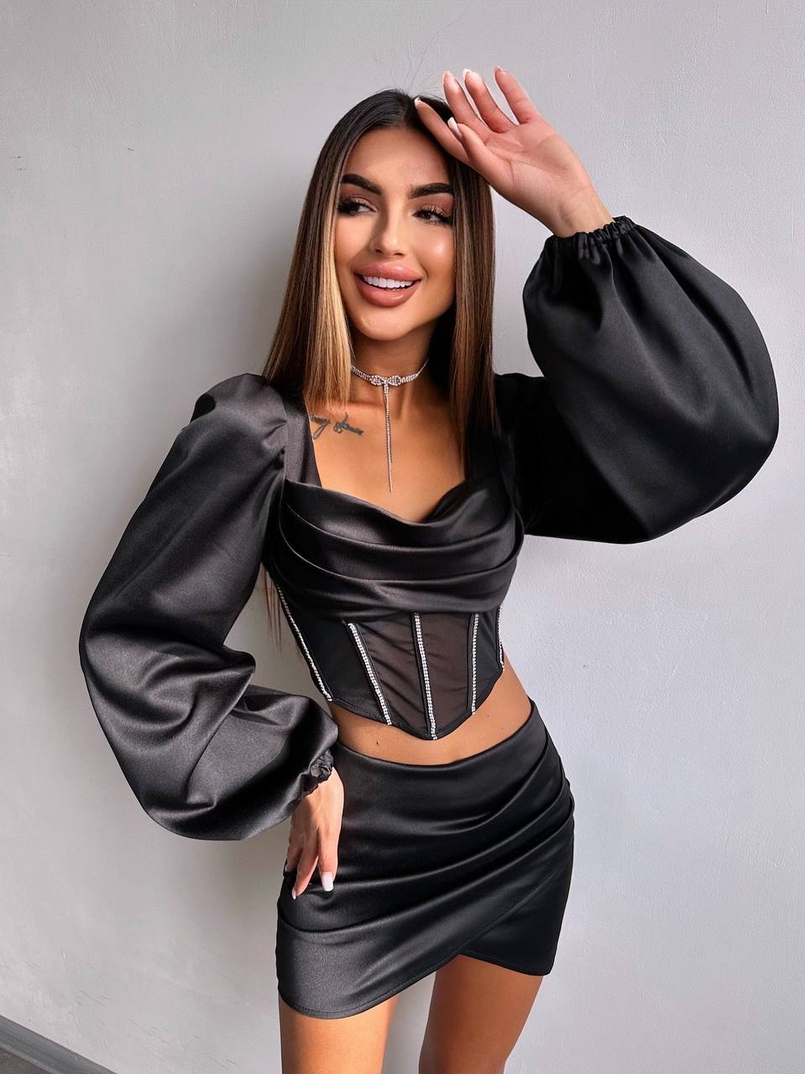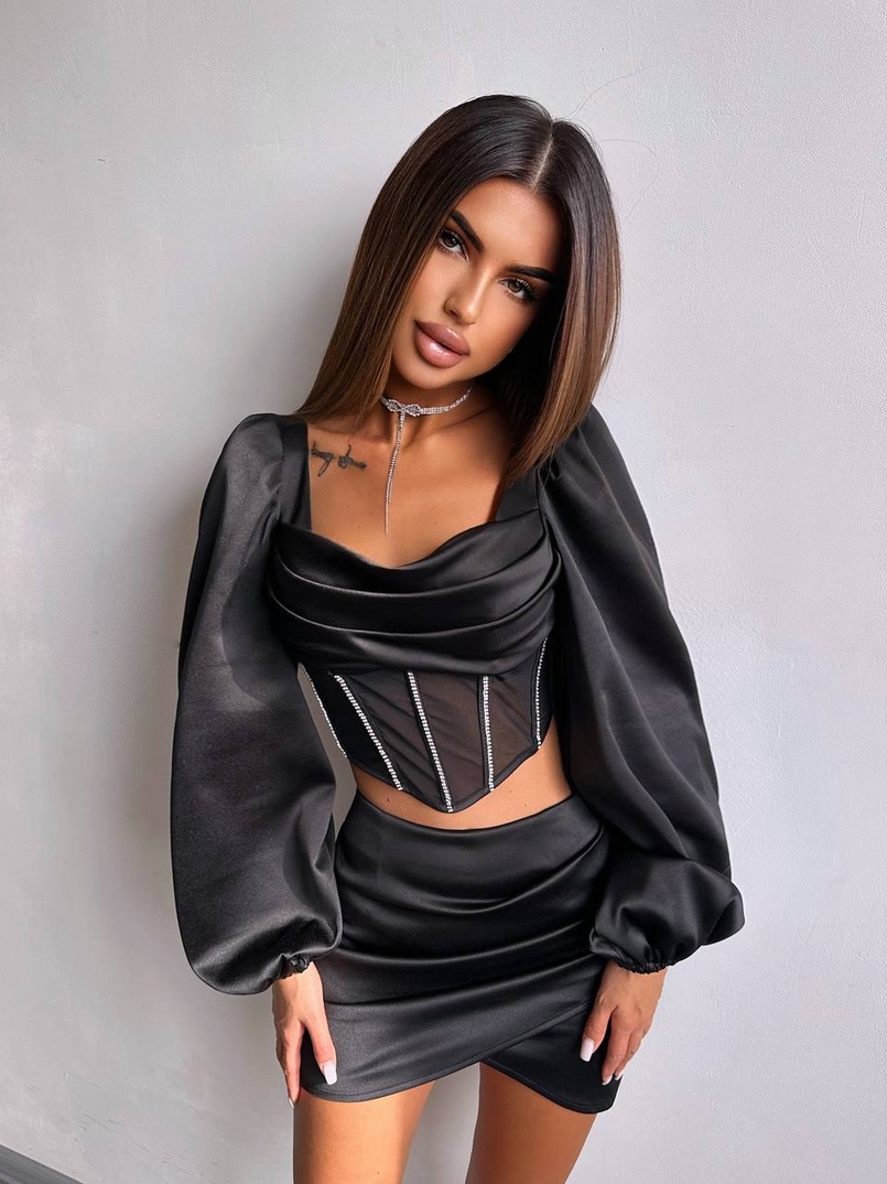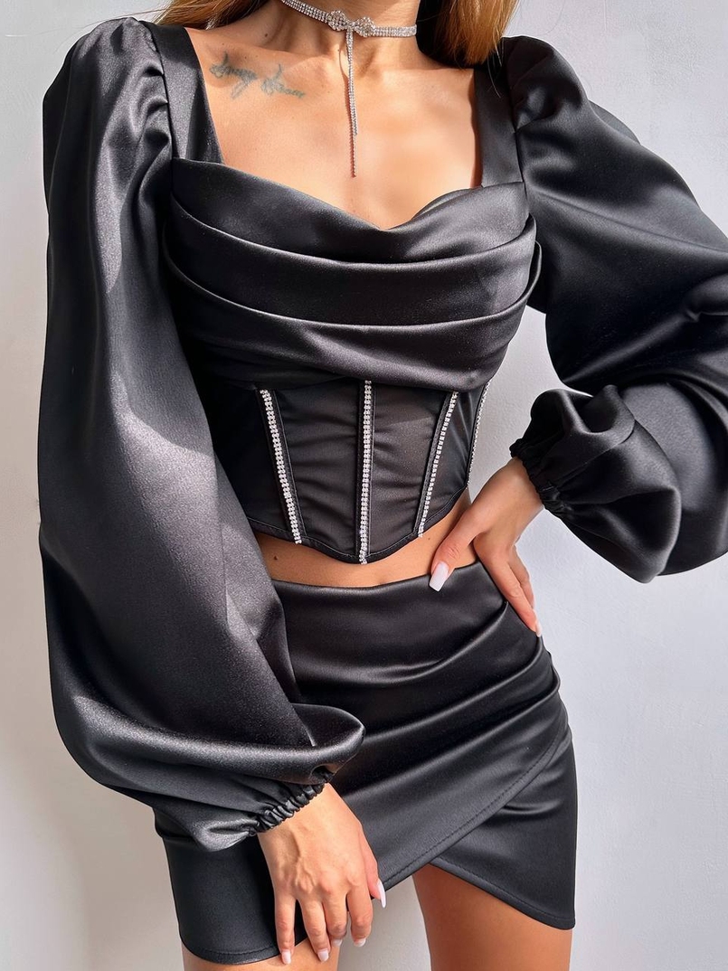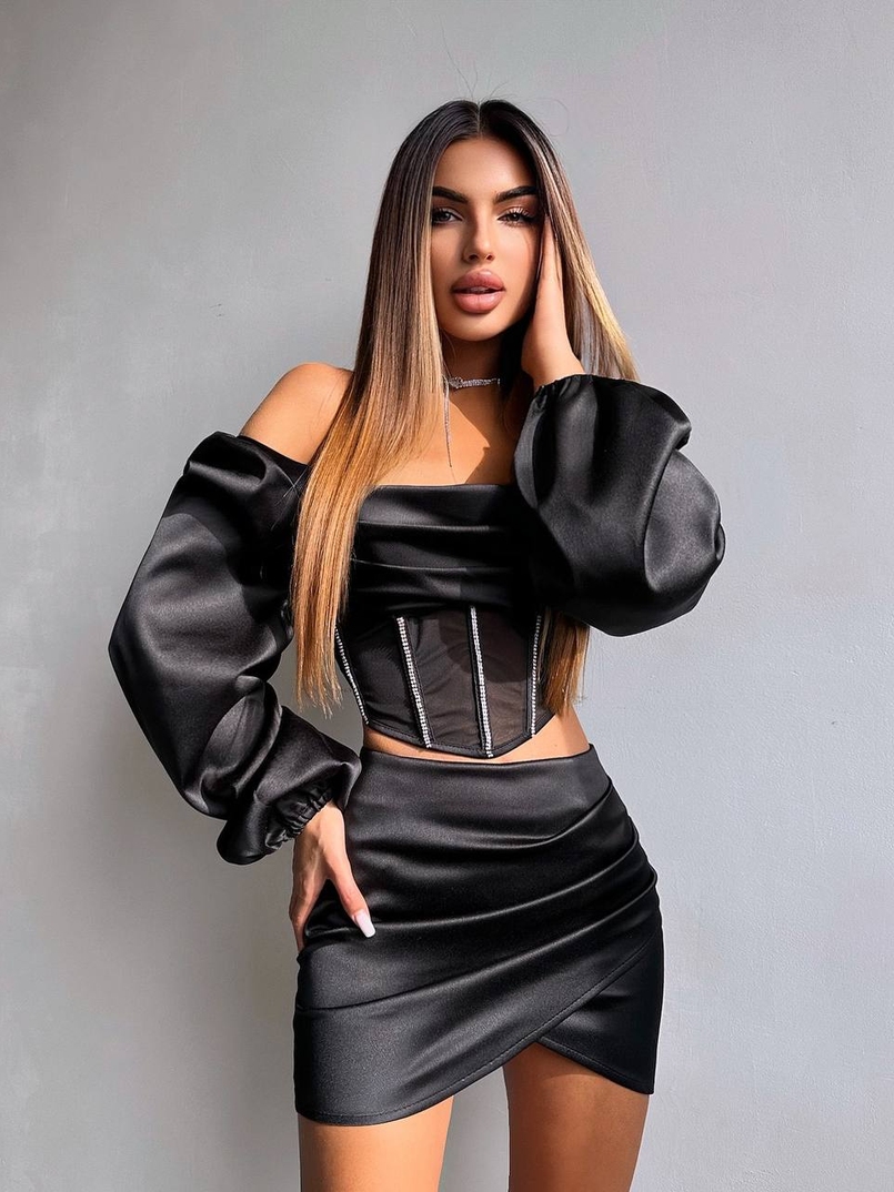 Комплект: корсет, декорований стразами + спідниця міні з драпіруванням