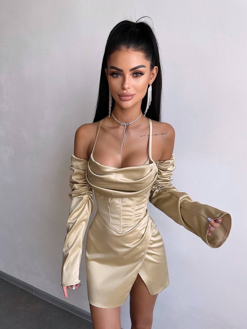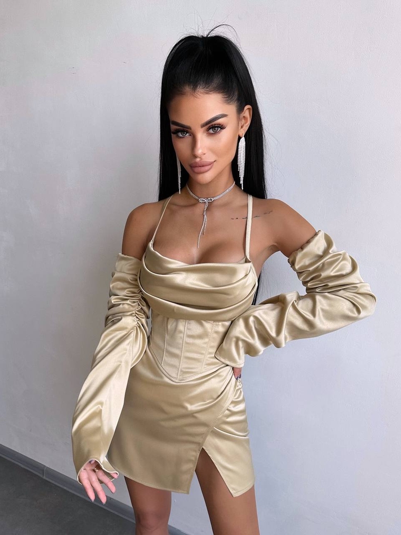 Комплект: корсет з рукавами + спідниця міні з драпіруванням