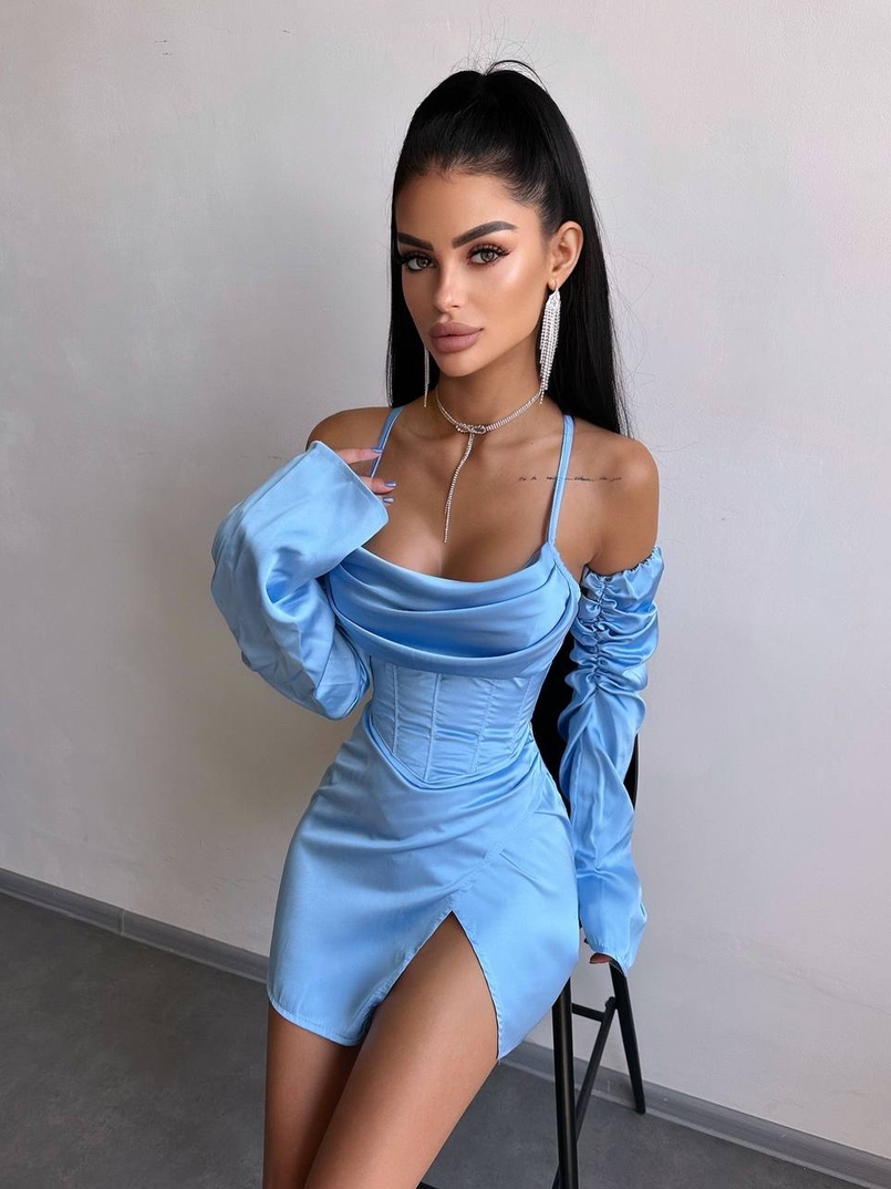 Комплект: корсет з рукавами + спідниця міні з драпіруванням