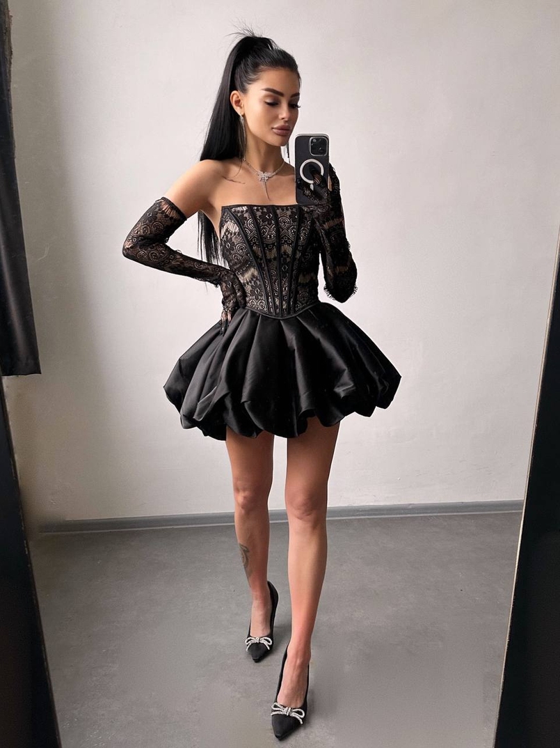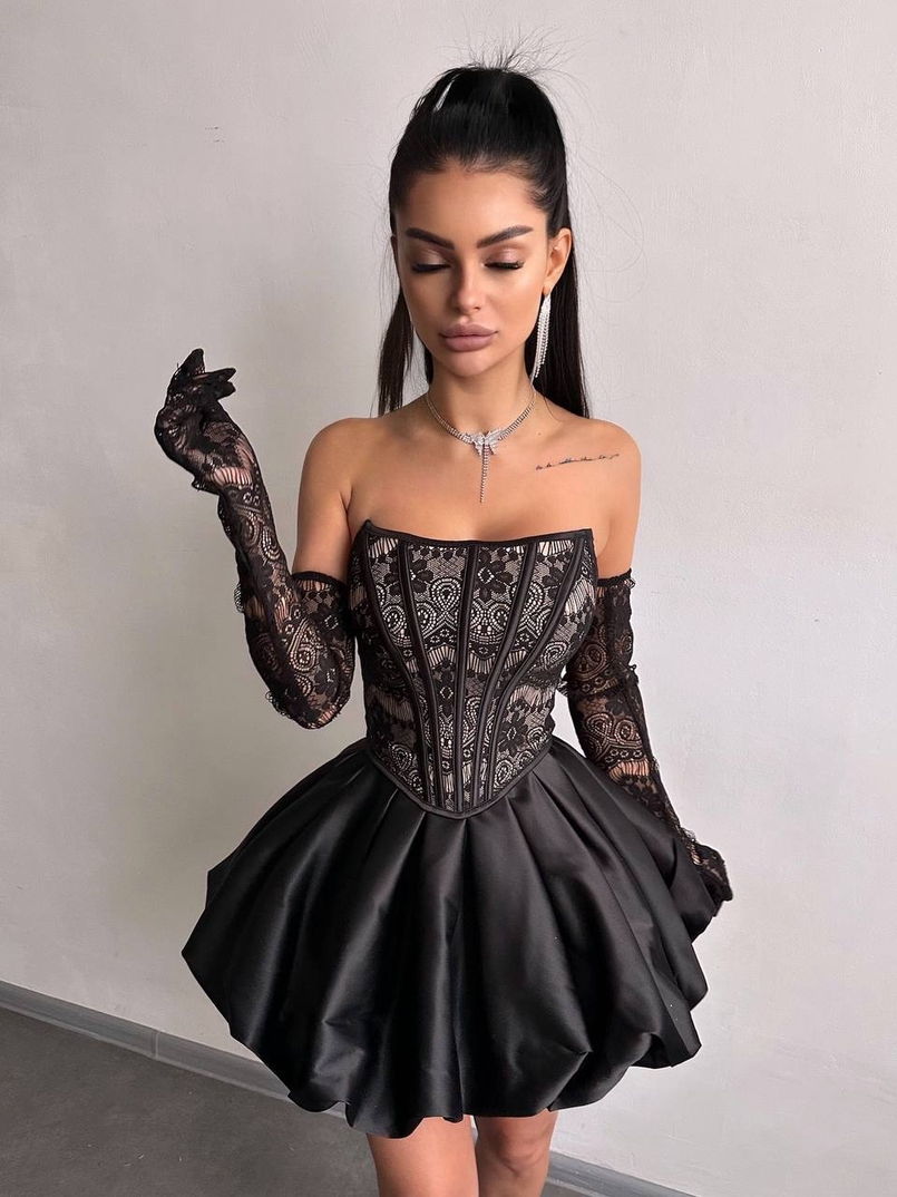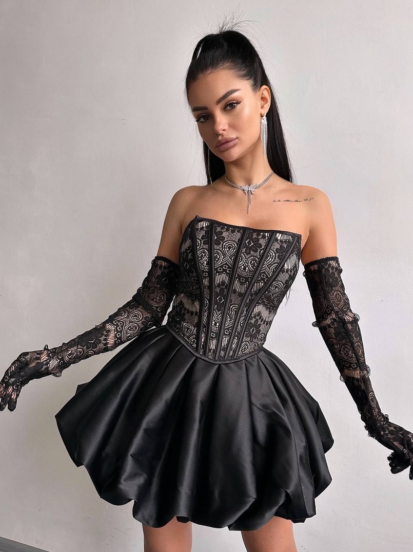Комплект : мереживний корсет з рукавичками + спідниця балон