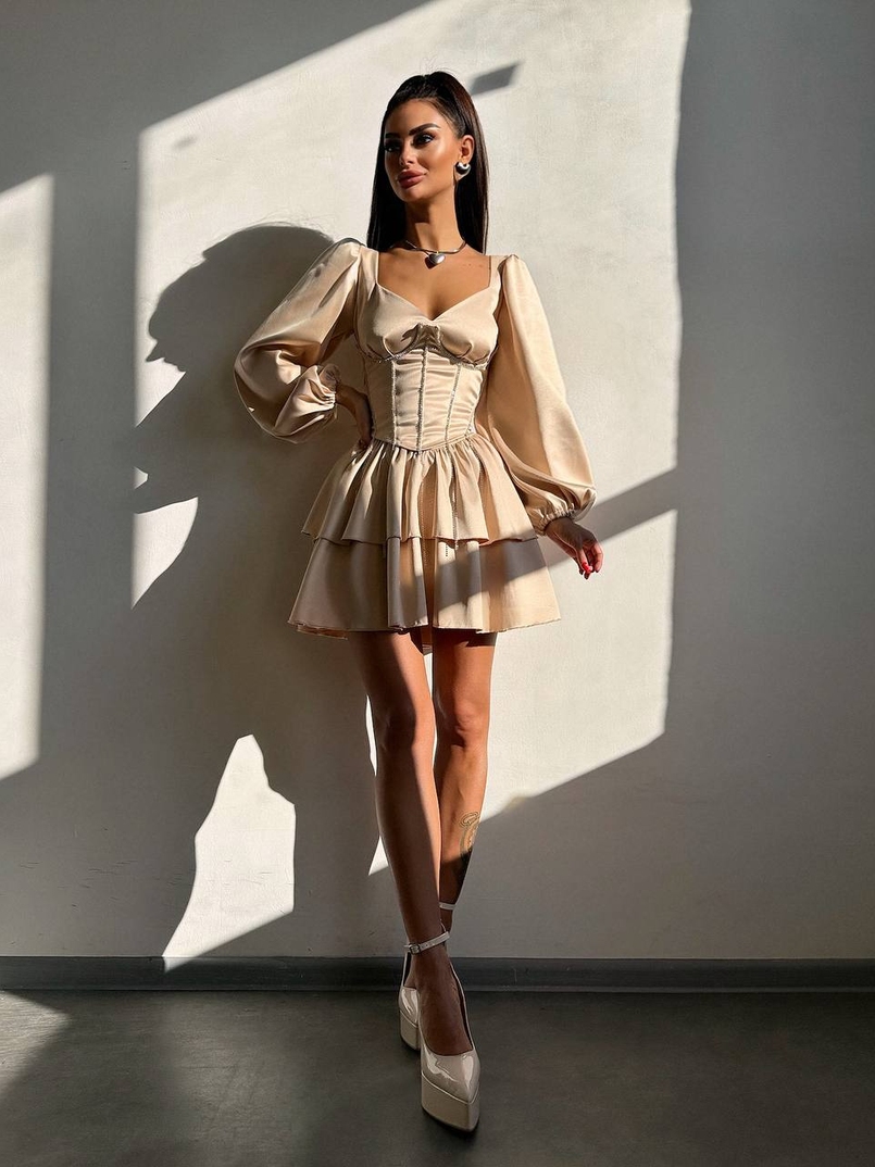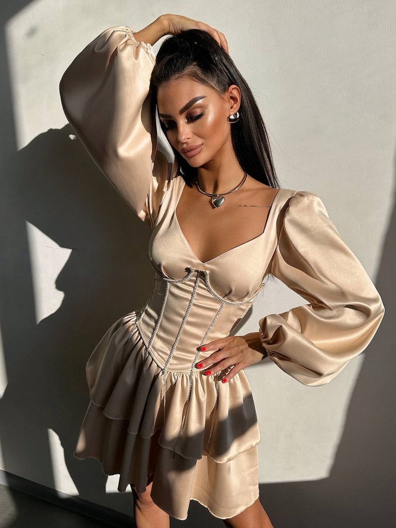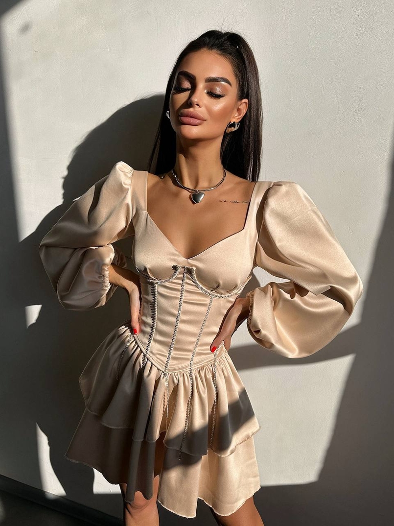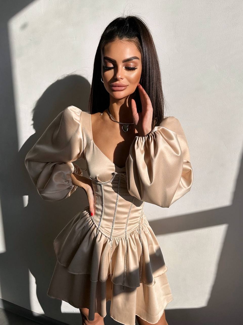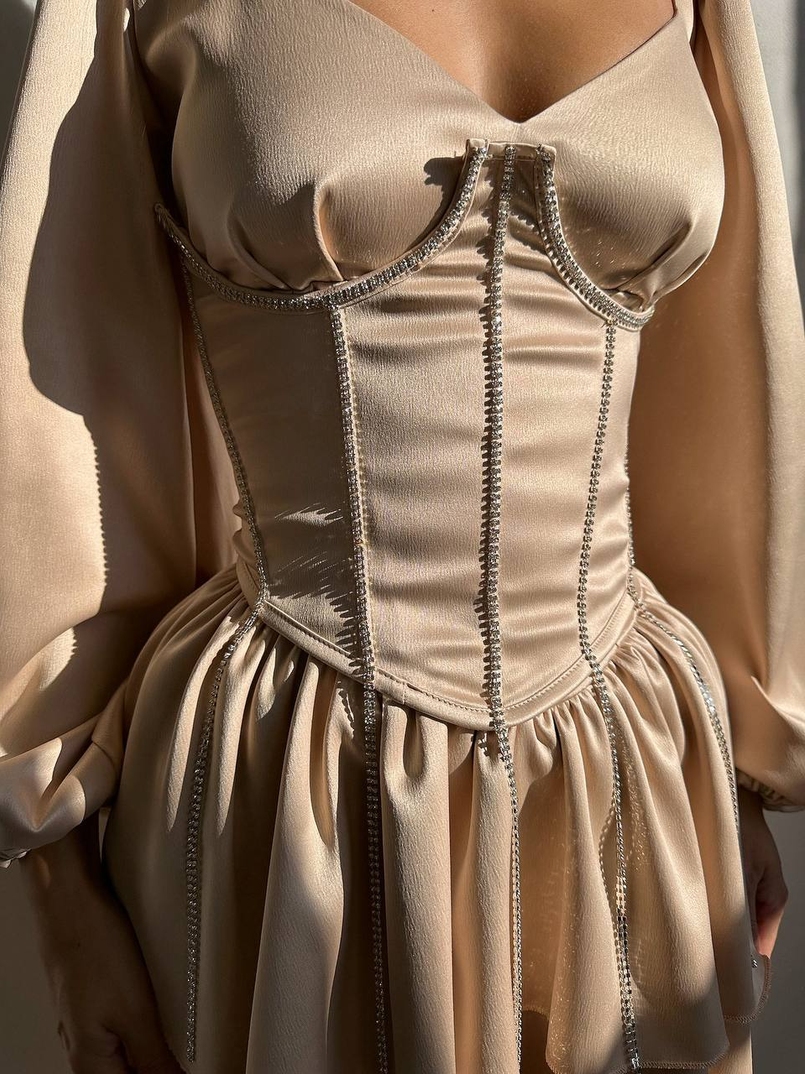 Комплект: сукня з подвійною спідницею + корсет, декорований стразами