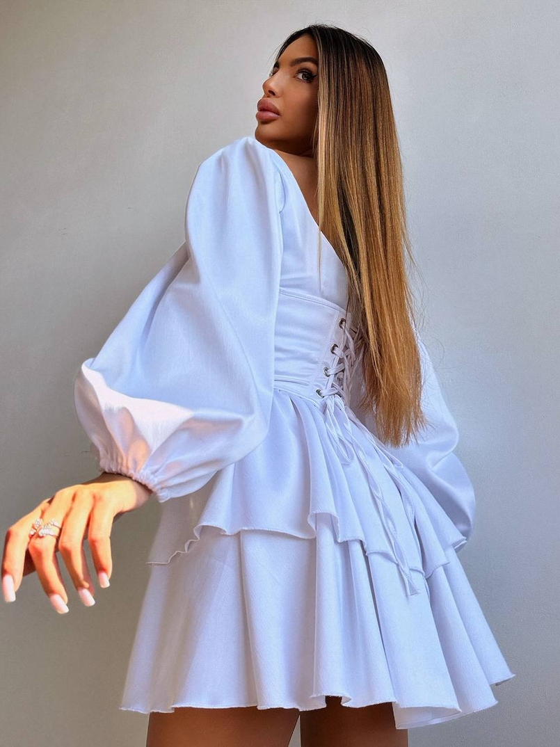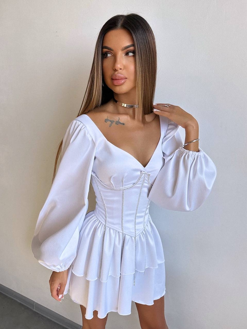 Комплект: сукня з подвійною спідницею + корсет, декорований стразами