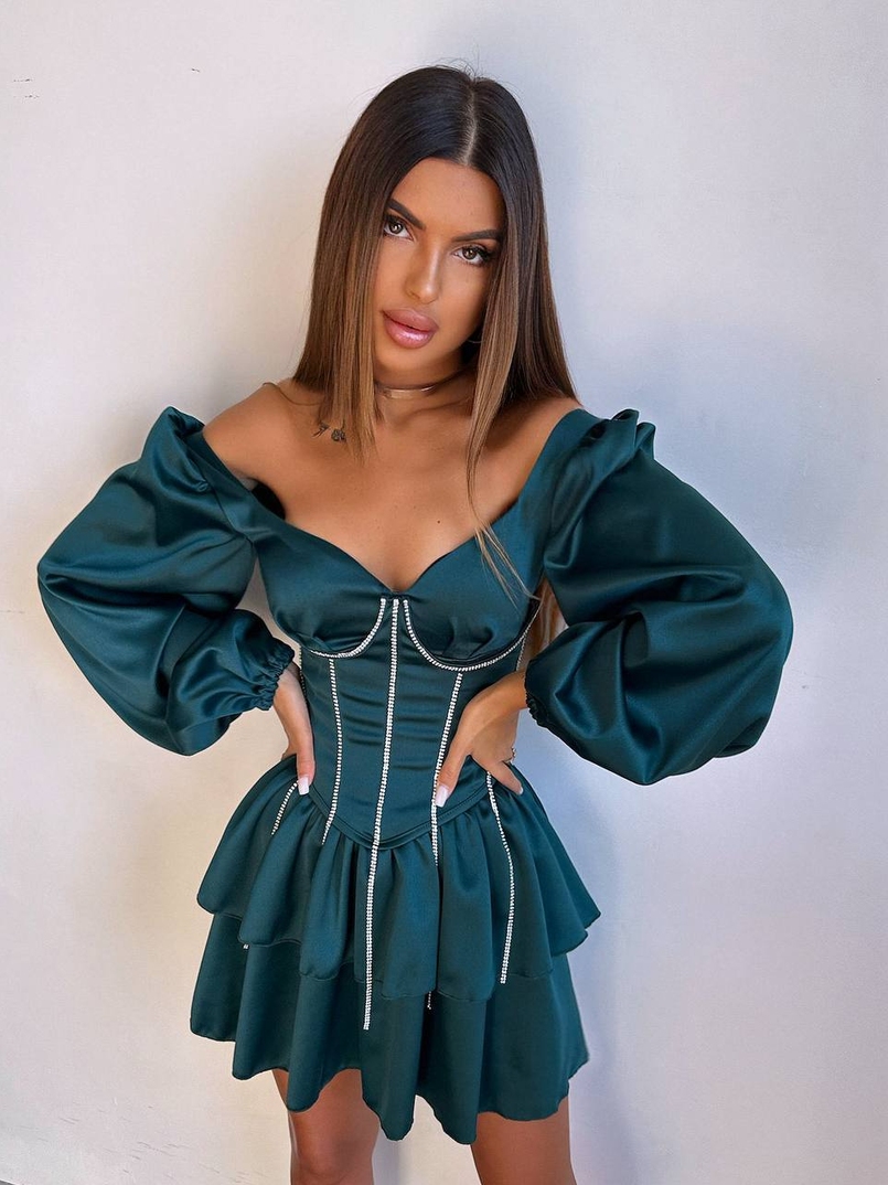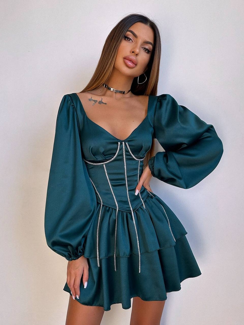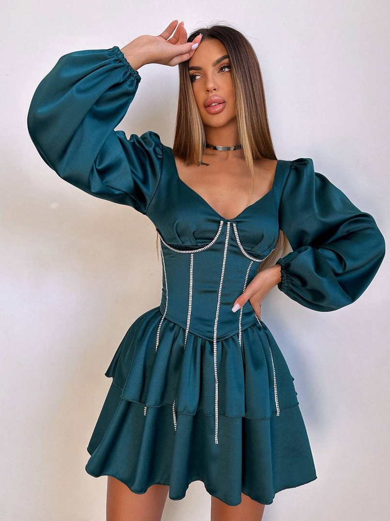 Комплект: сукня з подвійною спідницею + корсет, декорований стразами