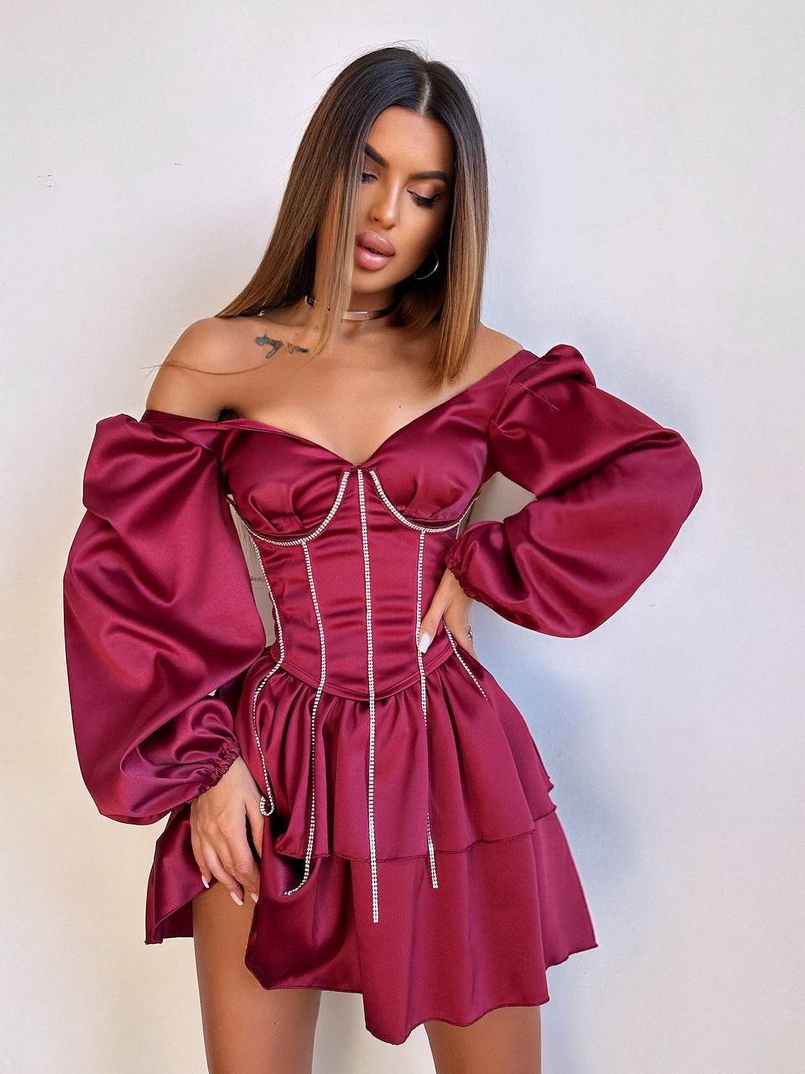 Комплект: сукня з подвійною спідницею + корсет, декорований стразами