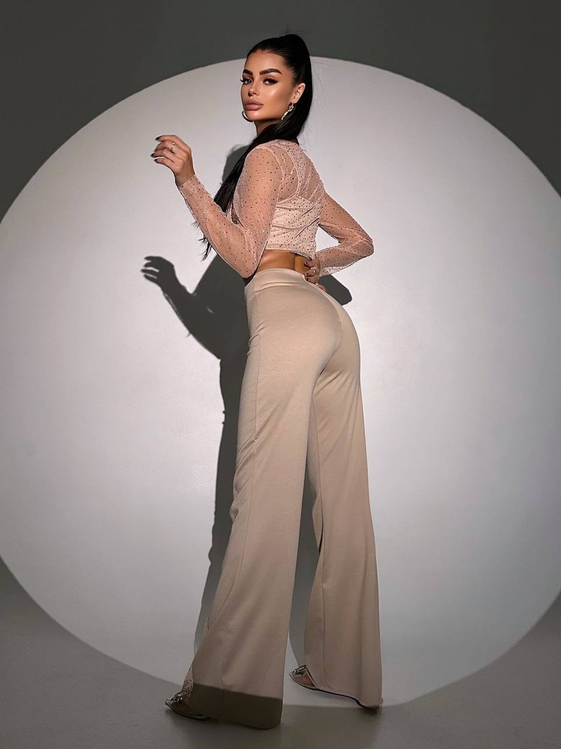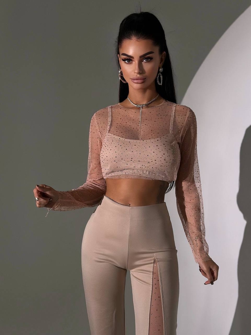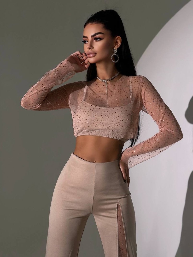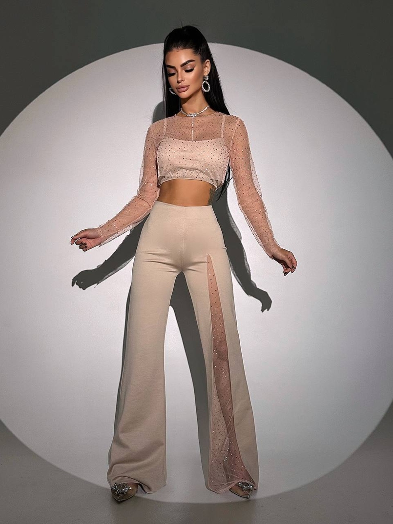 Комплект: топ + штани із сіткою зі стразами