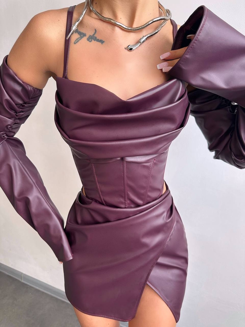 Комплект з еко шкіри: корсет з чашечками+ спідниця міні