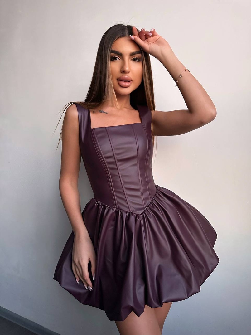 Корсетна сукня з еко-шкіри зі спідницею-балоном