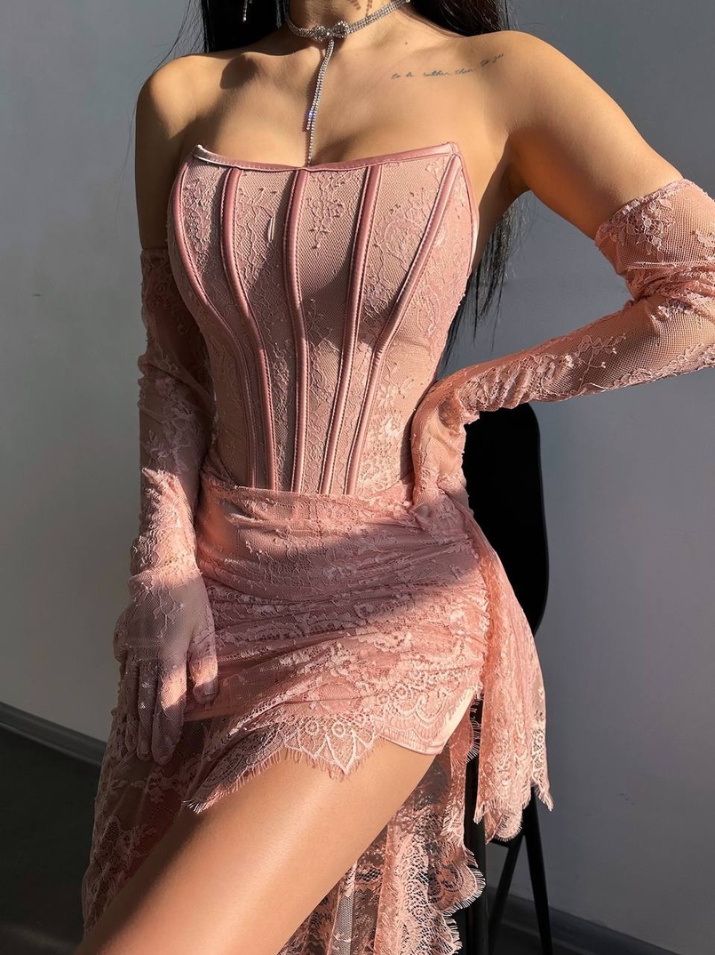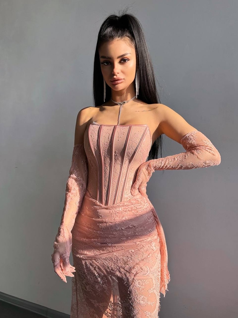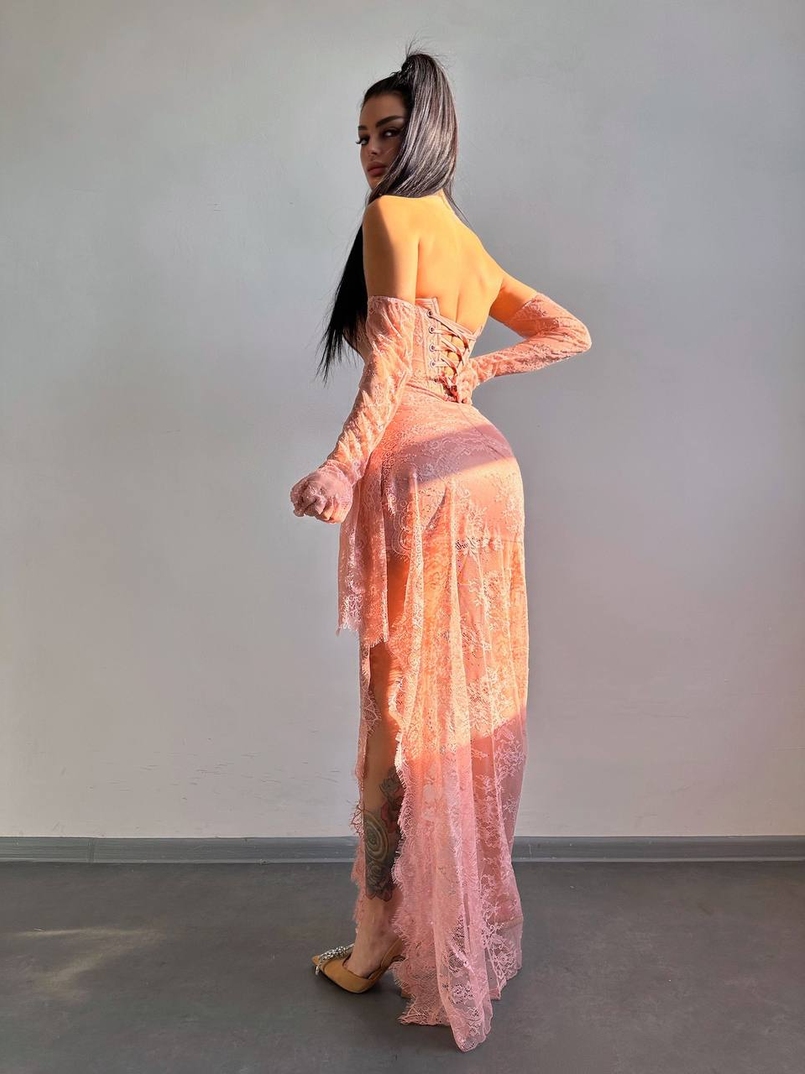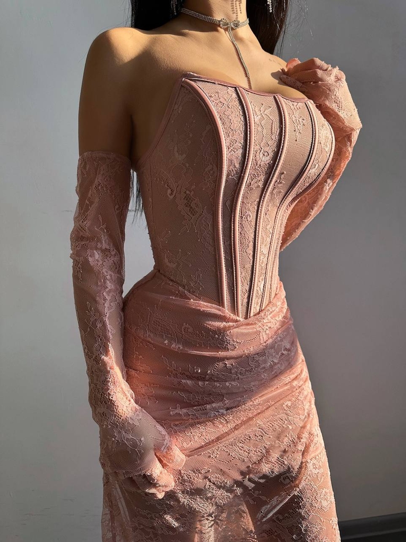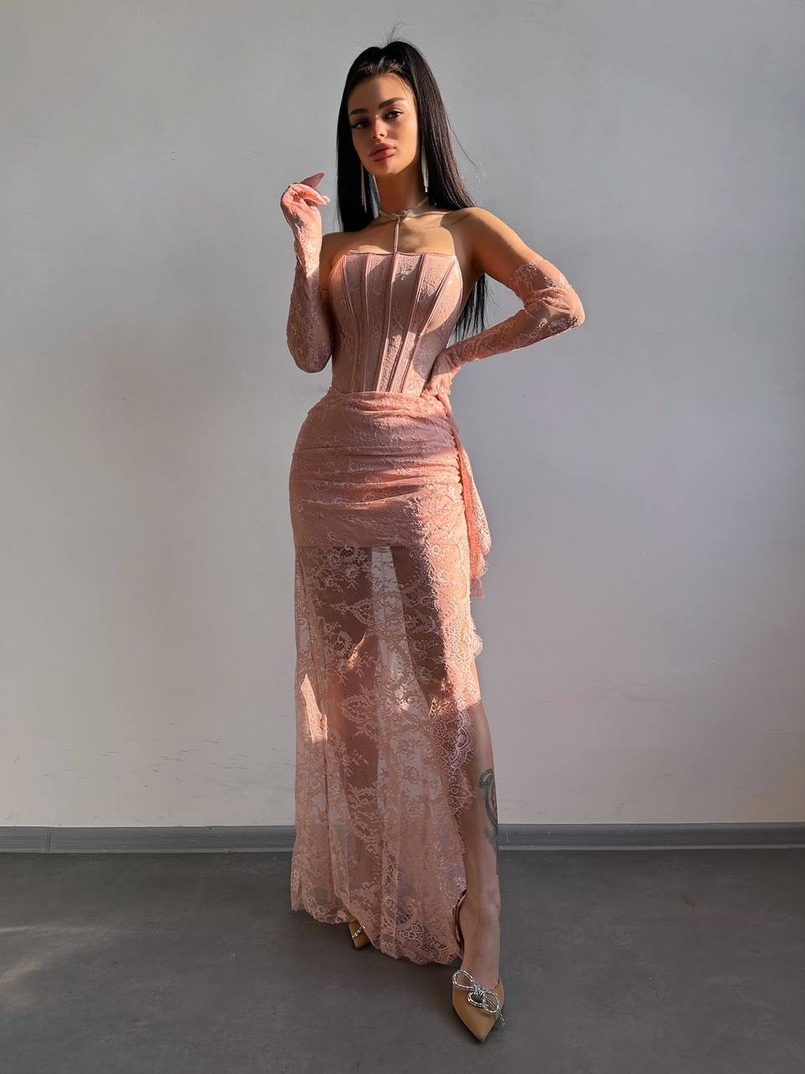 Мереживна сукня максі з рукавичками