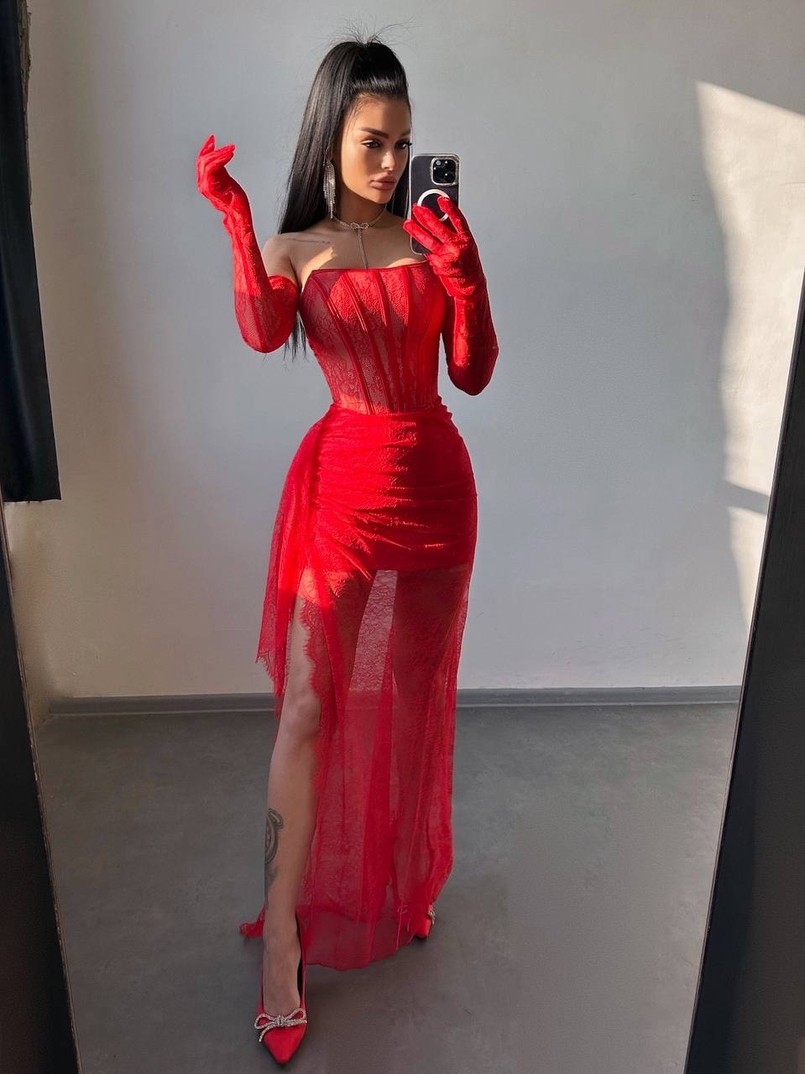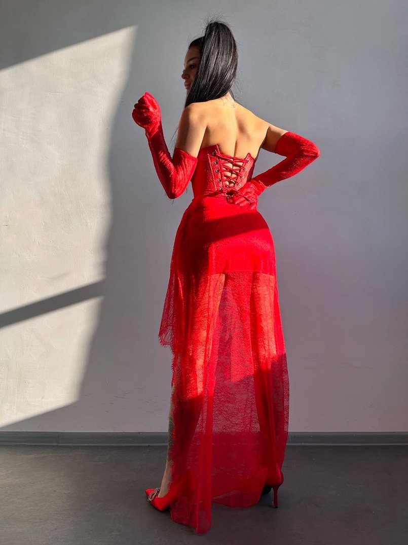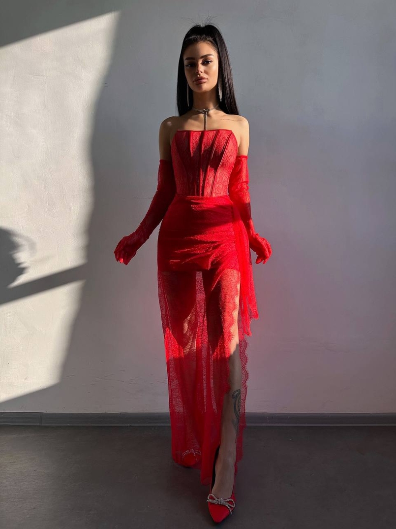 Мереживна сукня максі з рукавичками