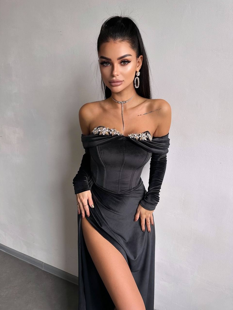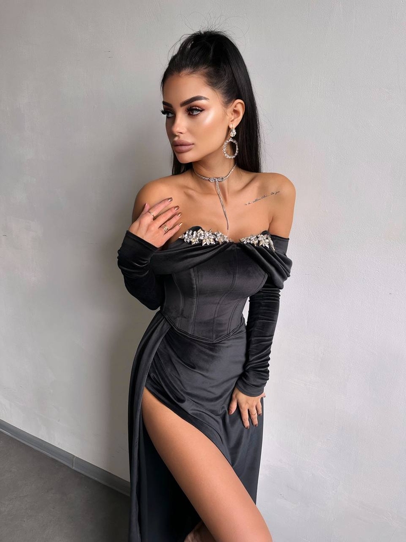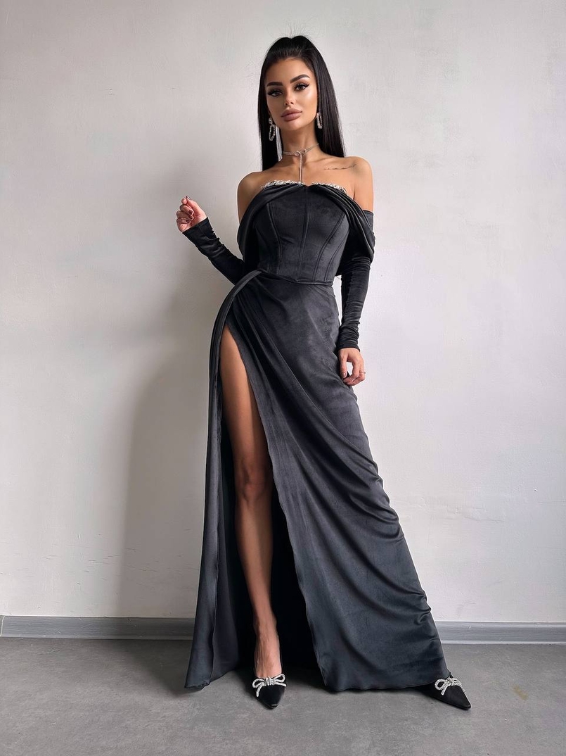 Оксамитова сукня максі декорована стразами Ручна робота