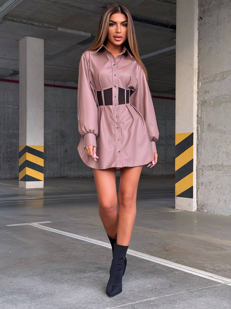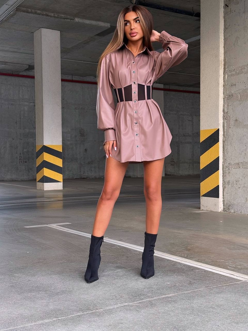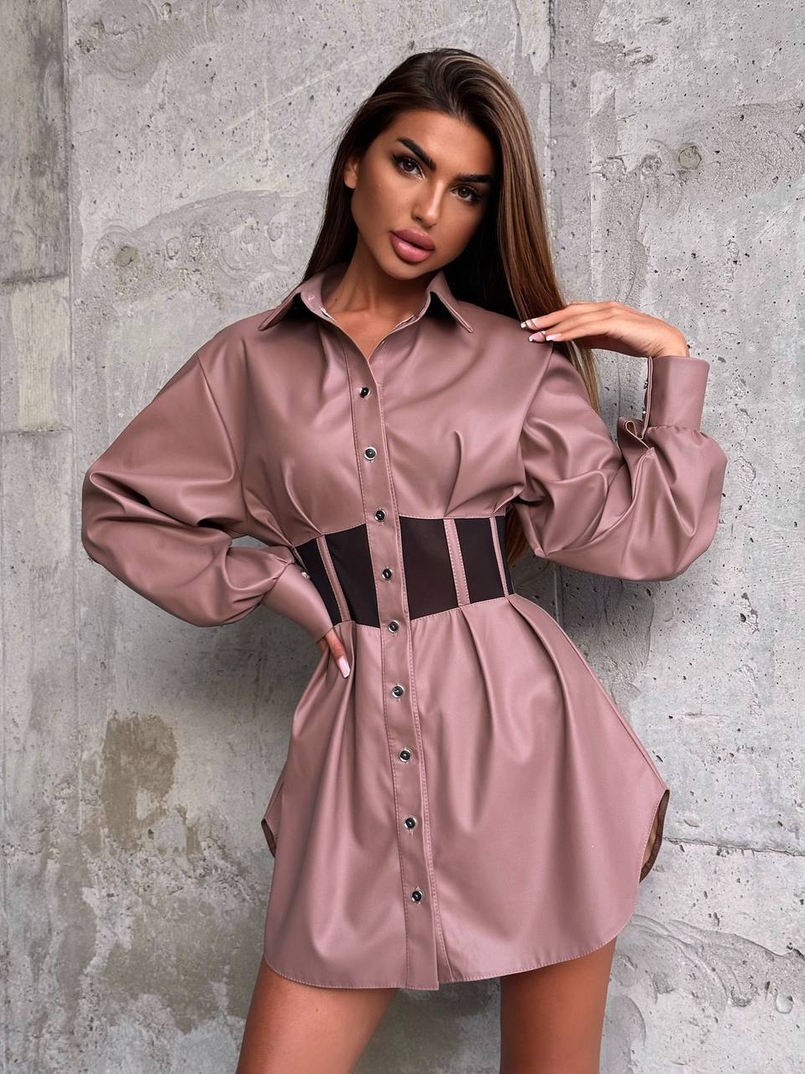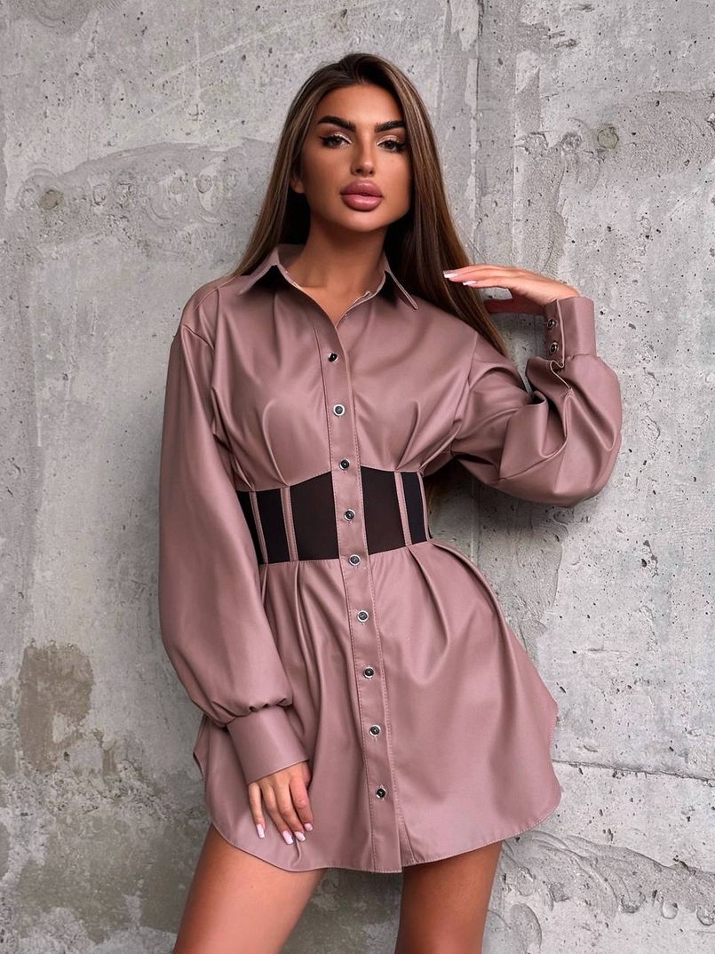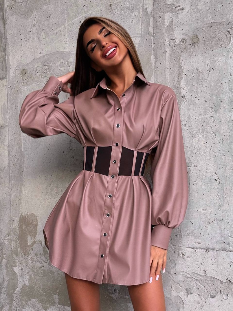 Сукня-сорочка з корсетними елементами з еко-шкіри