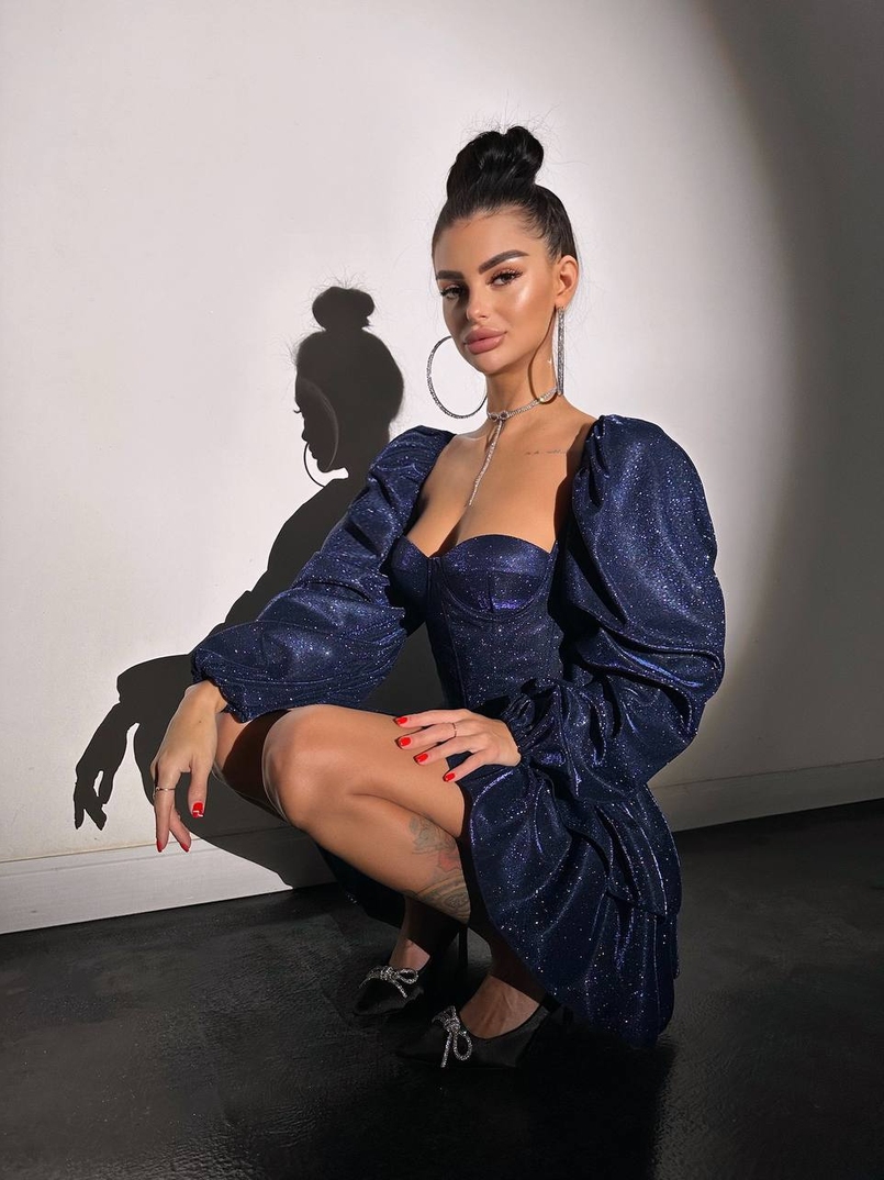 Сяюча корсетна сукня бюстьє з подвійною спідницею