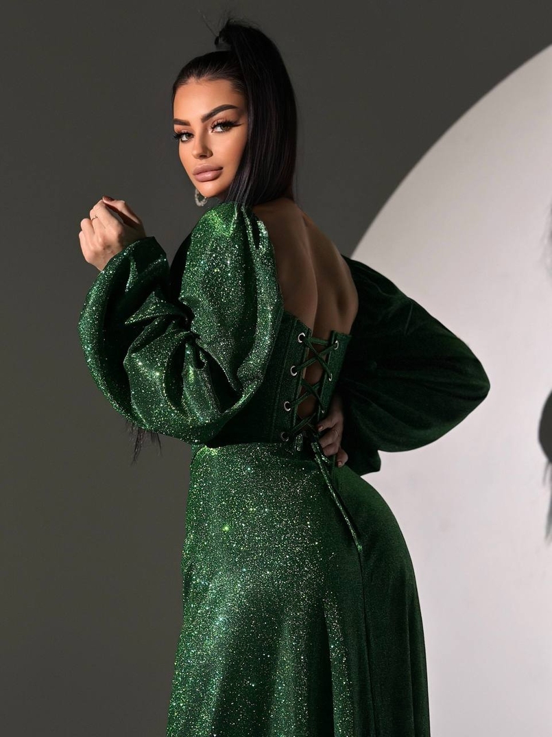 Сяючий комплект: корсет + спідниця максі з драпіруванням