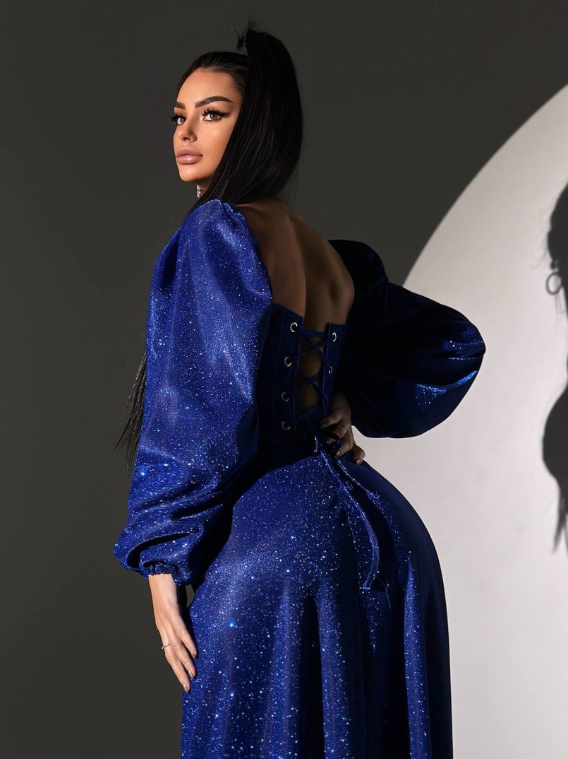 Сяючий комплект: корсет + спідниця максі з драпіруванням