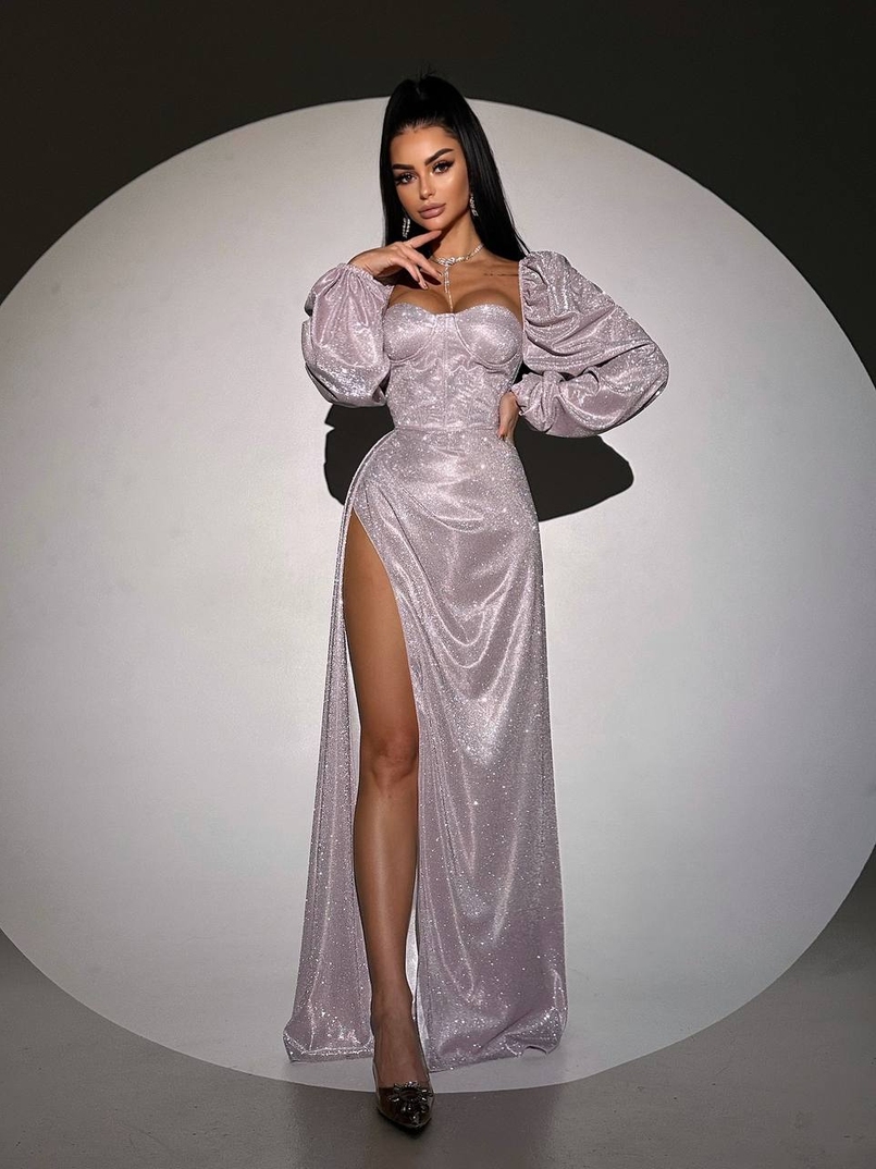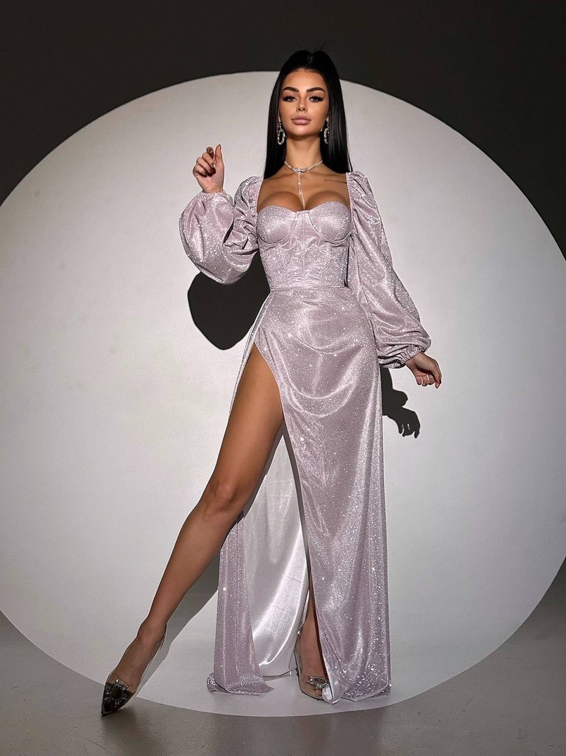 Сяючий комплект: корсет + спідниця максі з драпіруванням