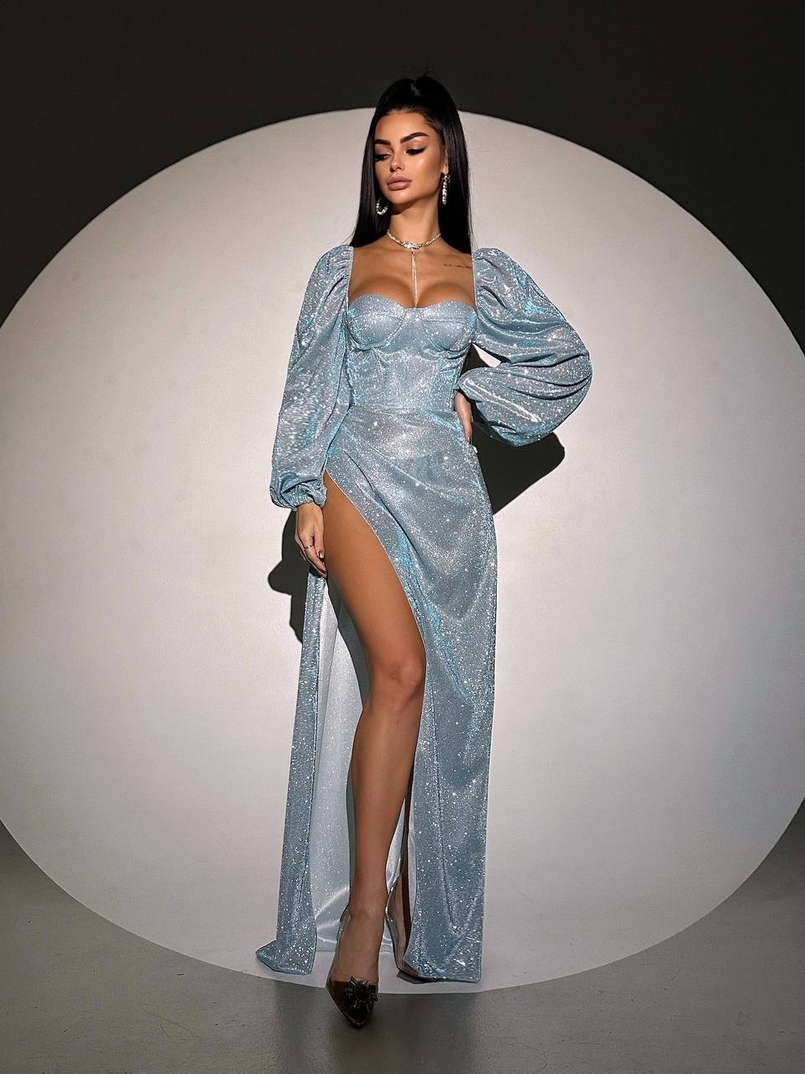 Сяючий комплект: корсет + спідниця максі з драпіруванням