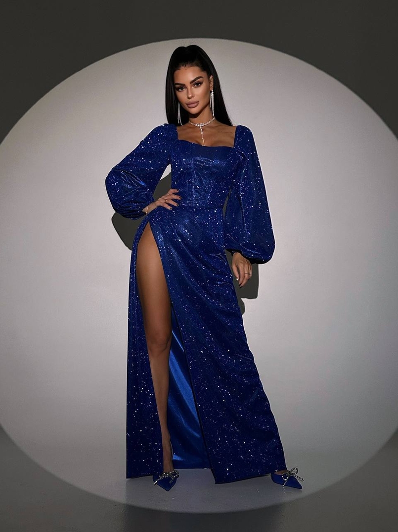 Сяючий комплект: корсет + спідниця максі з драпіруванням