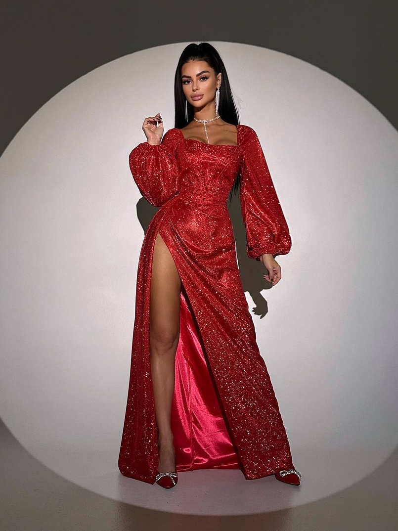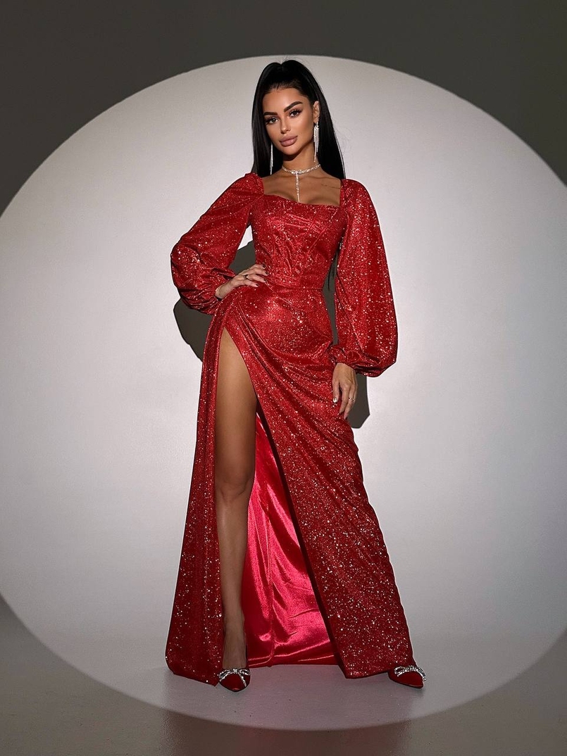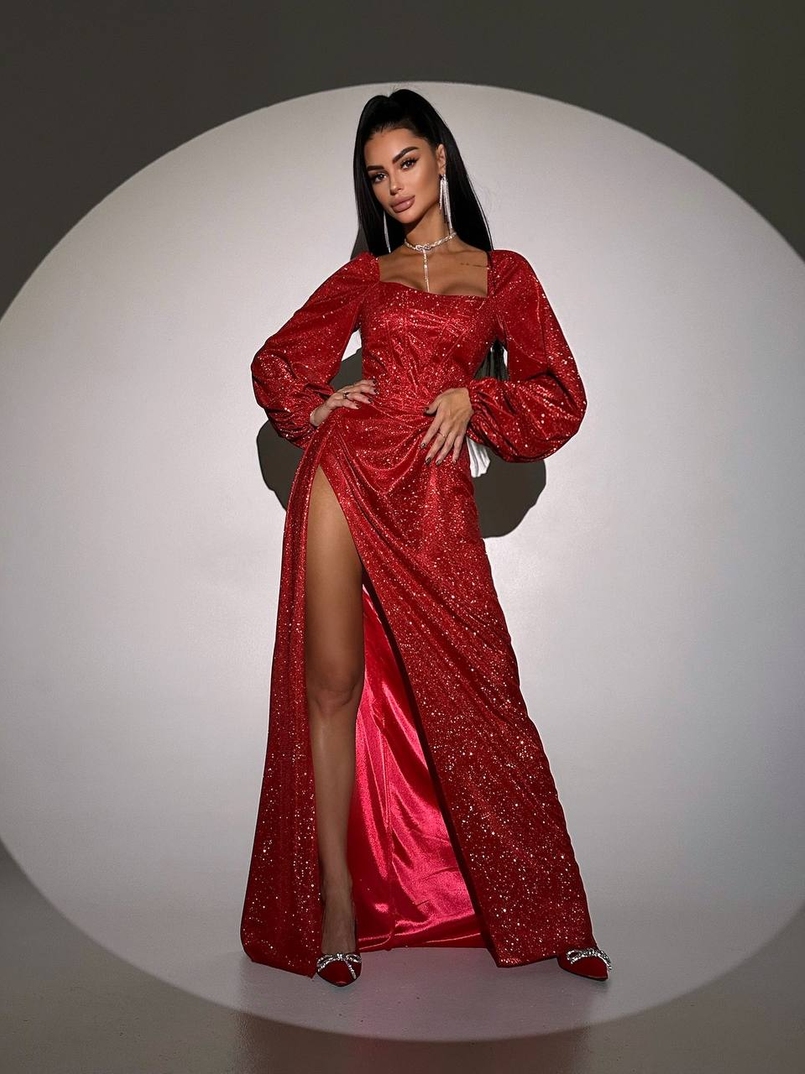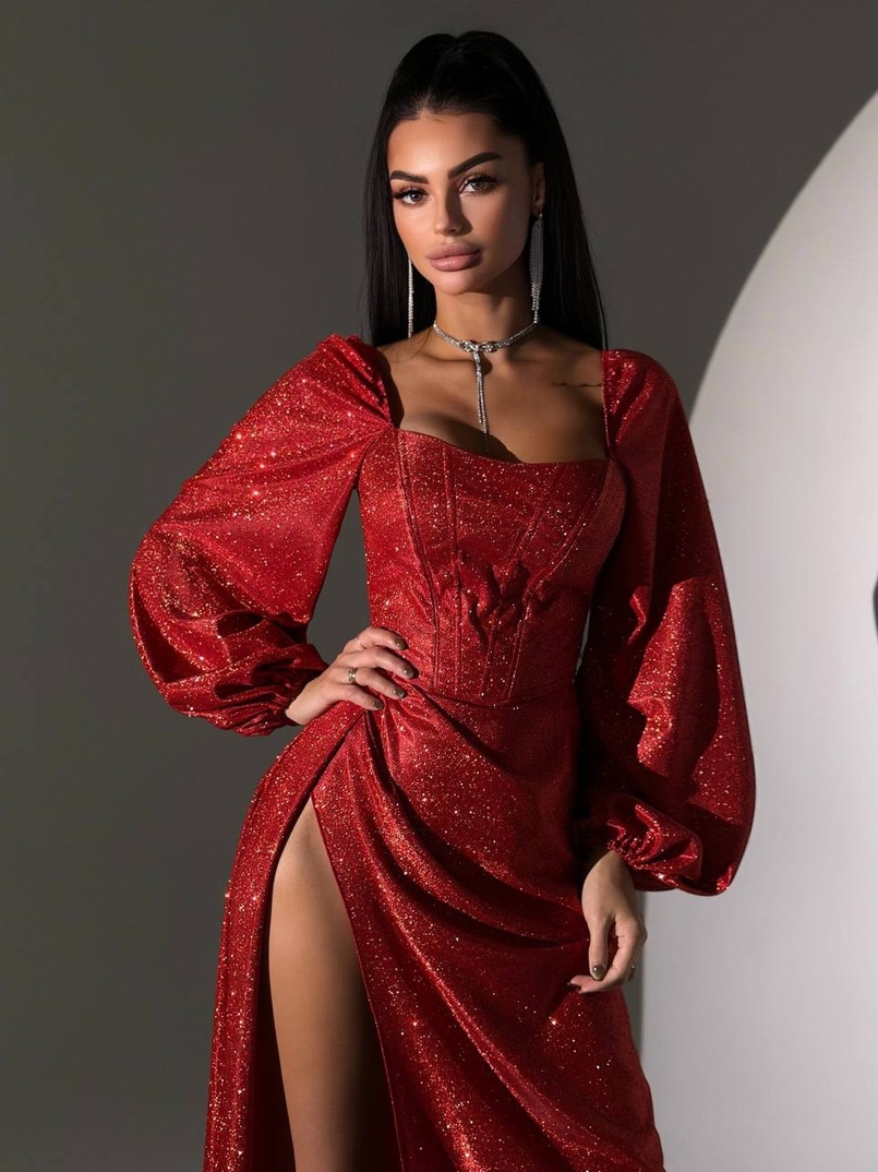 Сяючий комплект: корсет + спідниця максі з драпіруванням