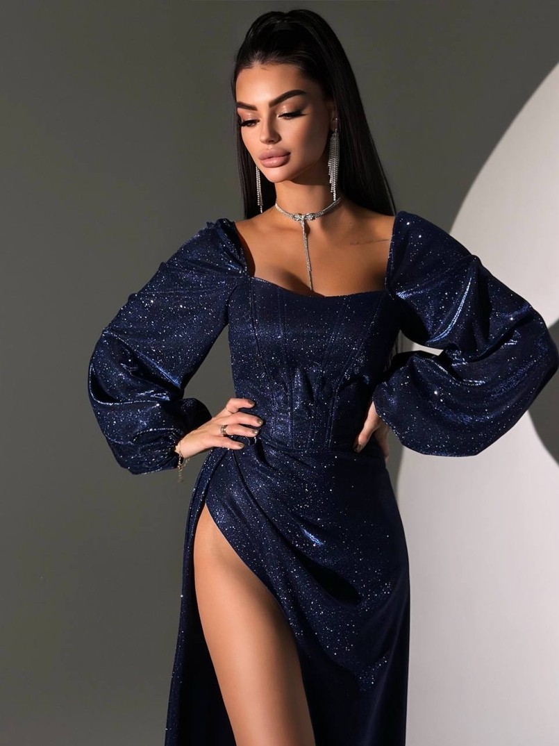 Сяючий комплект: корсет + спідниця максі з драпіруванням