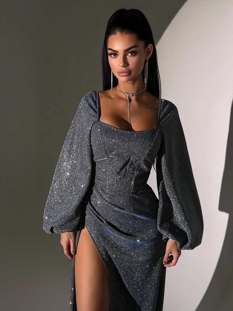 Сяючий комплект: корсет + спідниця максі з драпіруванням