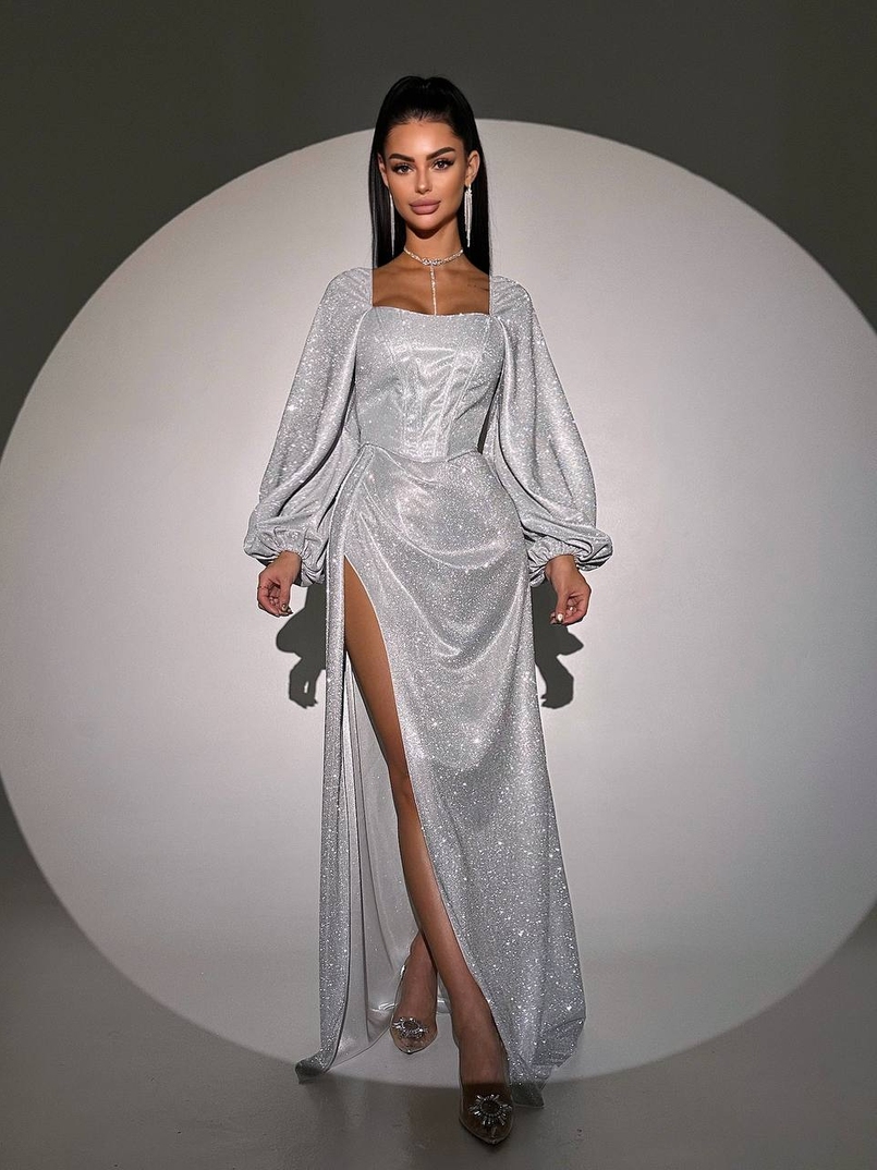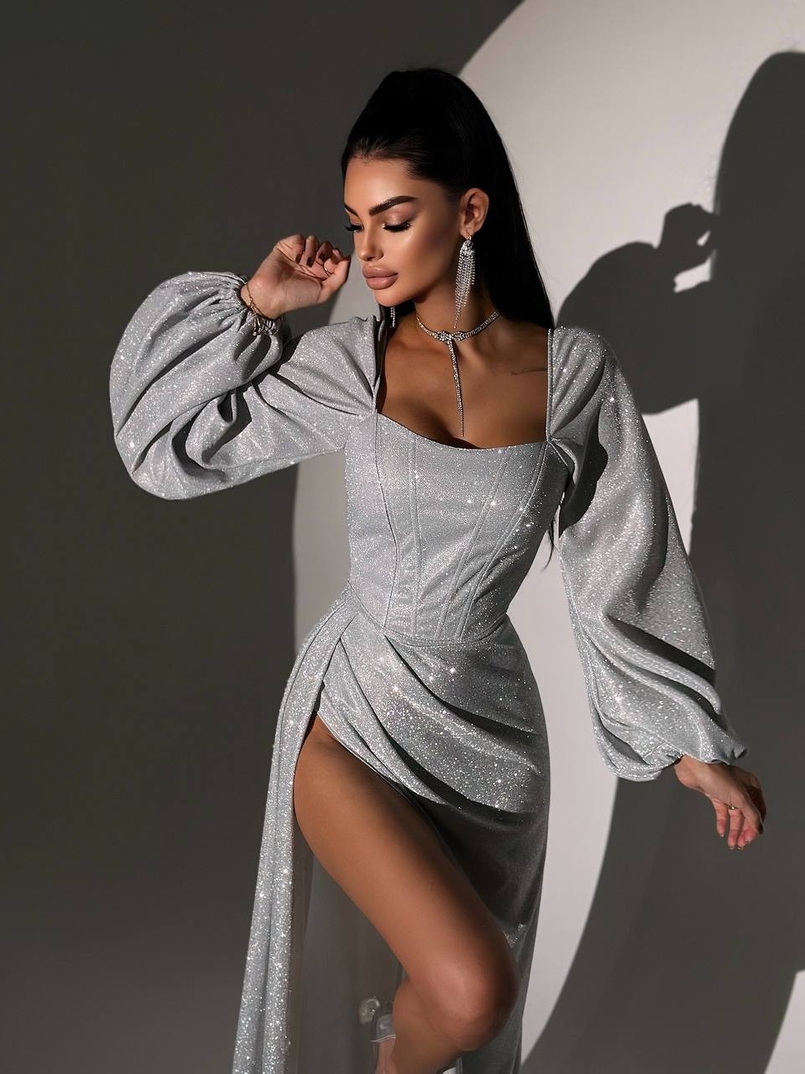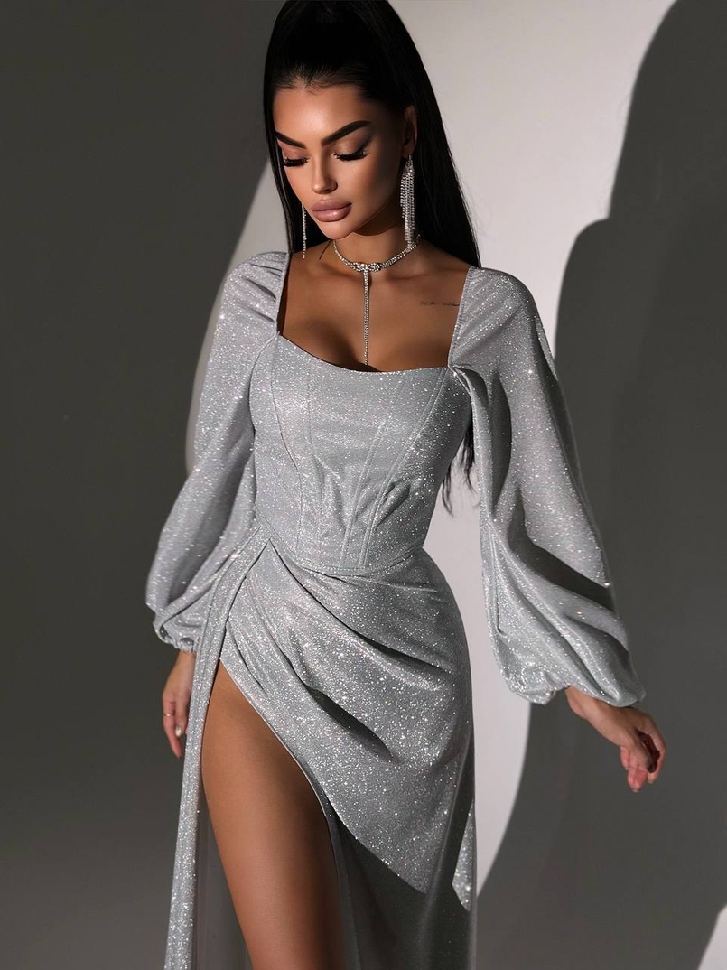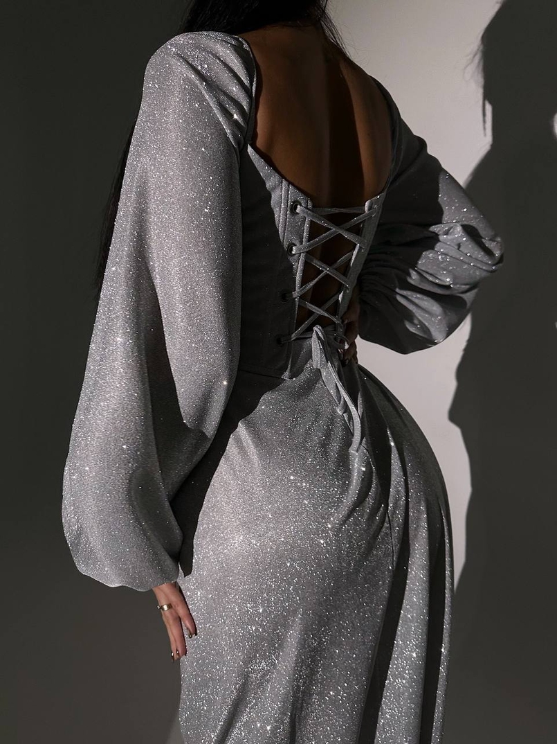 Сяючий комплект: корсет + спідниця максі з драпіруванням
