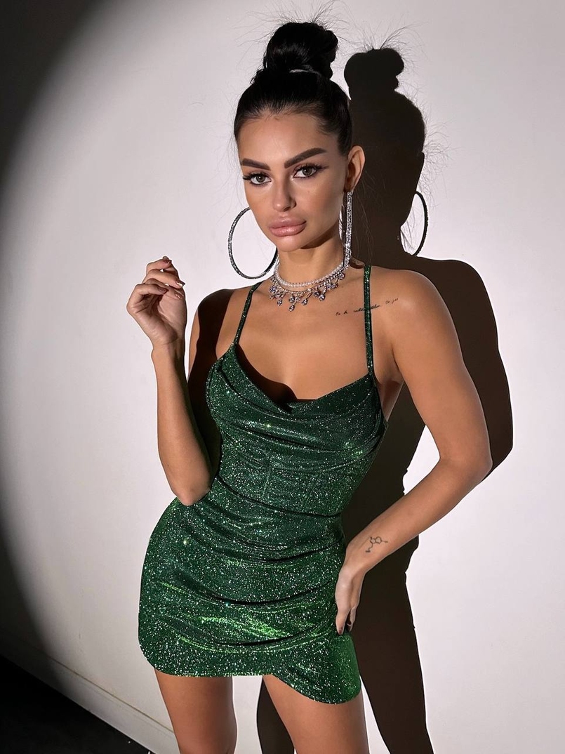 Сяючий комплект: корсет + спідниця міні з драпіруванням