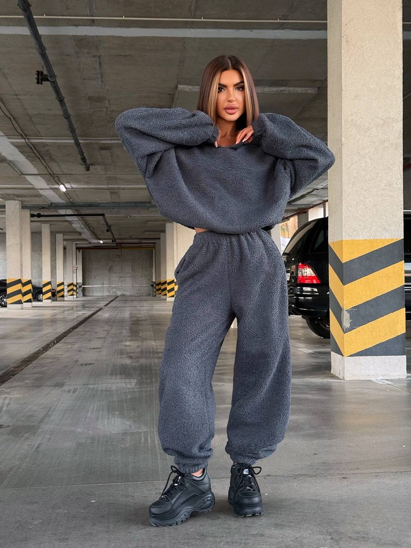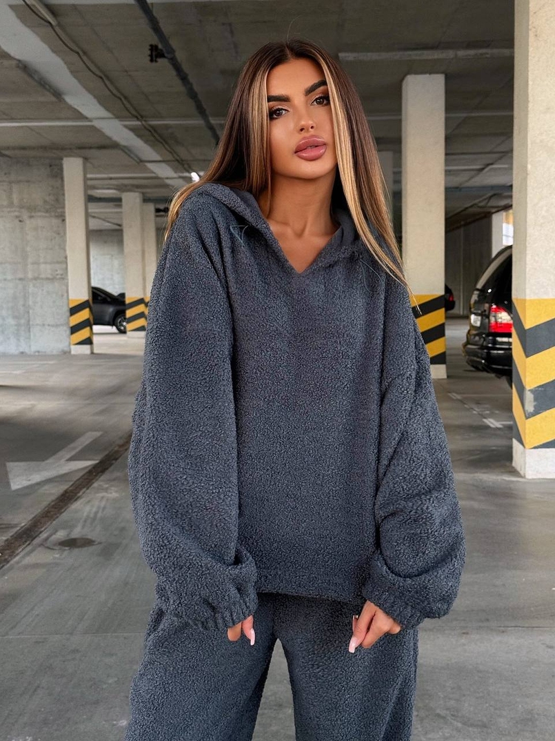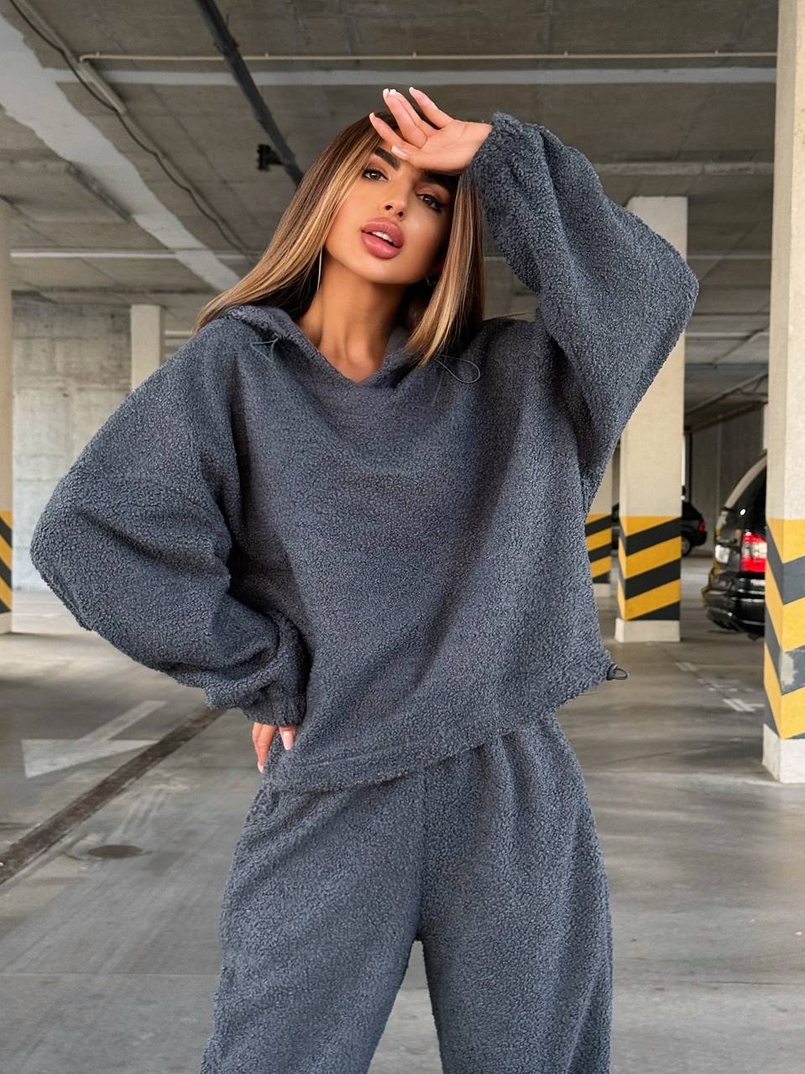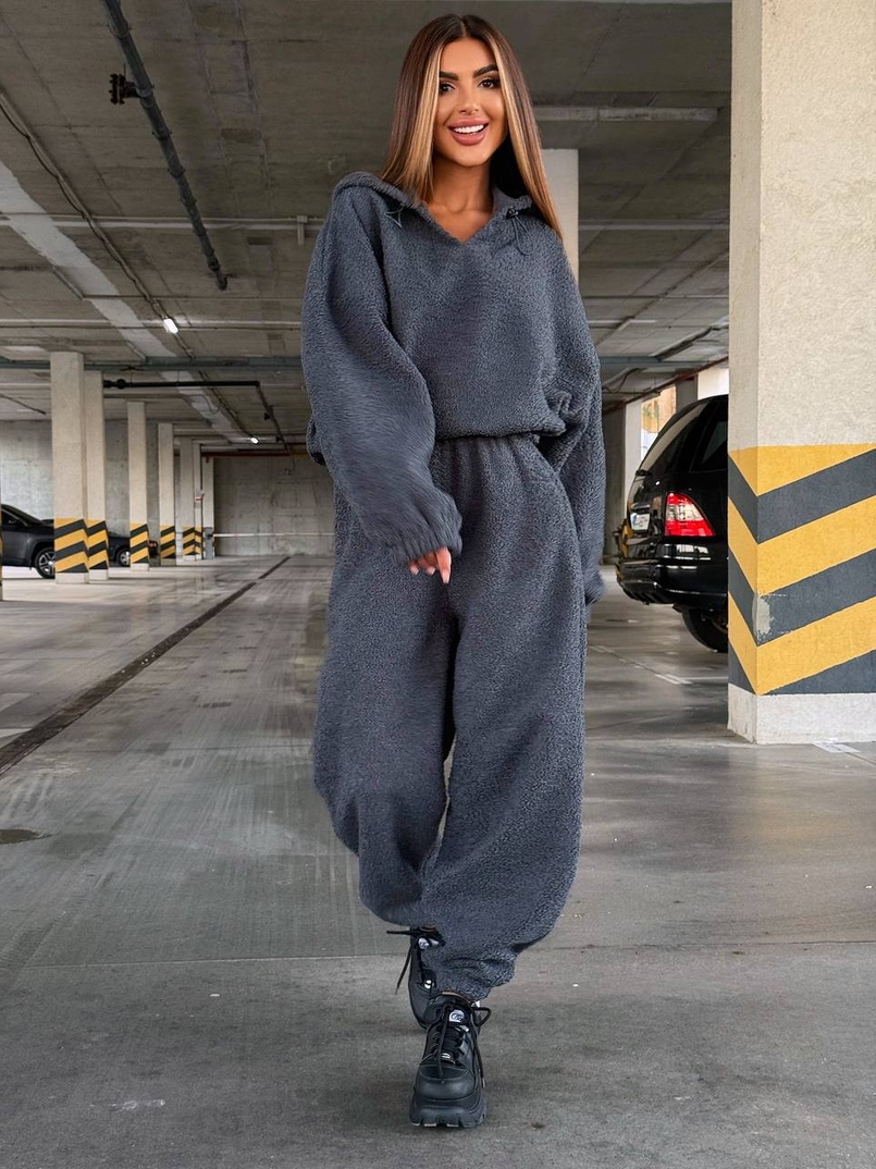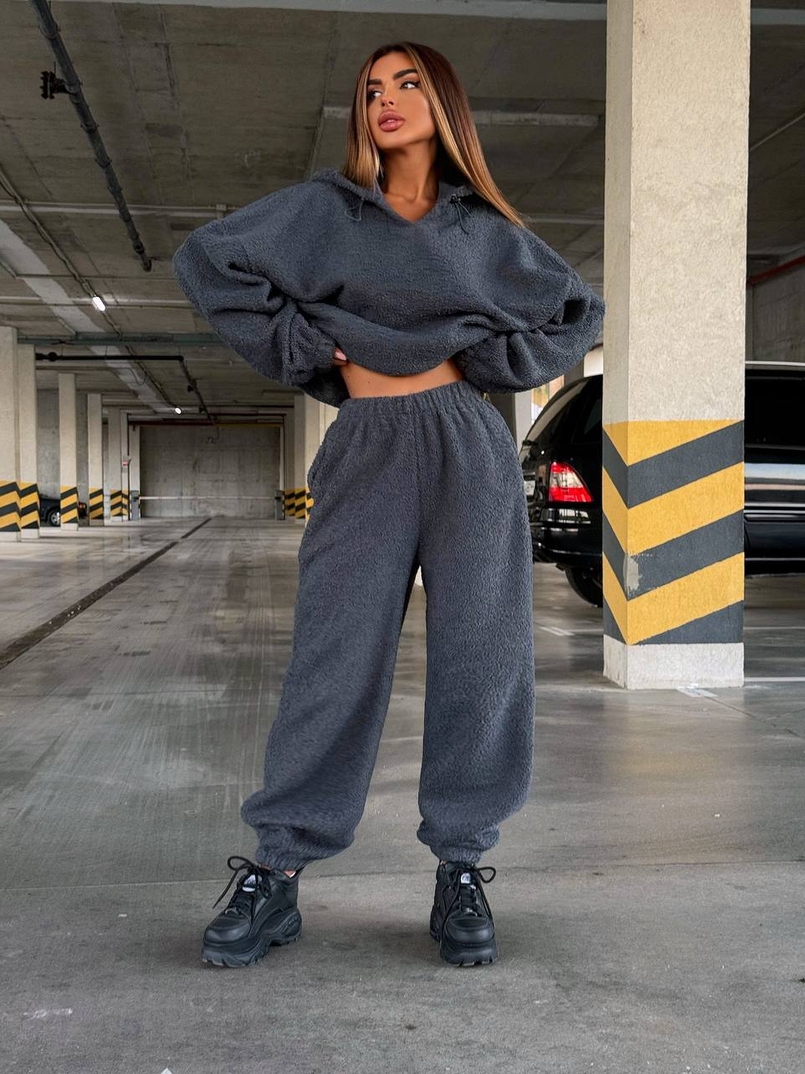 Теплий та мʼякий комплект: Обʼємний худі з капюшоном та штани з манжетами Дуже приємний до тіла